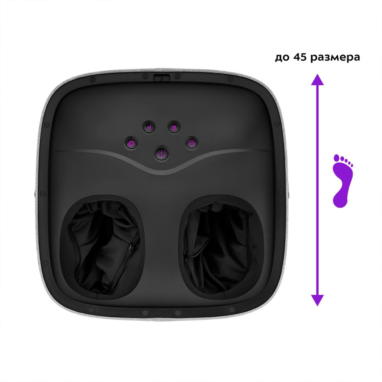 Купили в подарок Маме почти 2 года назад, за всё это время не было ни единого пререкания к данному массажеру. Пользуются им у нас все, и мне, с 46 размером ноги в нём комфортно. Нога не упирается никуда, место ещё есть с запасом. По поводу самой работы вопросов тоже нет, много режимов, много уровней силы, есть функция включения и отключения нагрева, что позволяет расслабится в холодный день после улицы. Есть два режима с роликами и один где работают только подушки, которые сжимают ногу. Мне как раз последний больше всего нравится на максимальной силе. Сам материал внутри приятный, не цепляется за ногти, не липнет к коже. Супер короче. Можно также использовать как обычную подставку для ног когда крышка на нём.