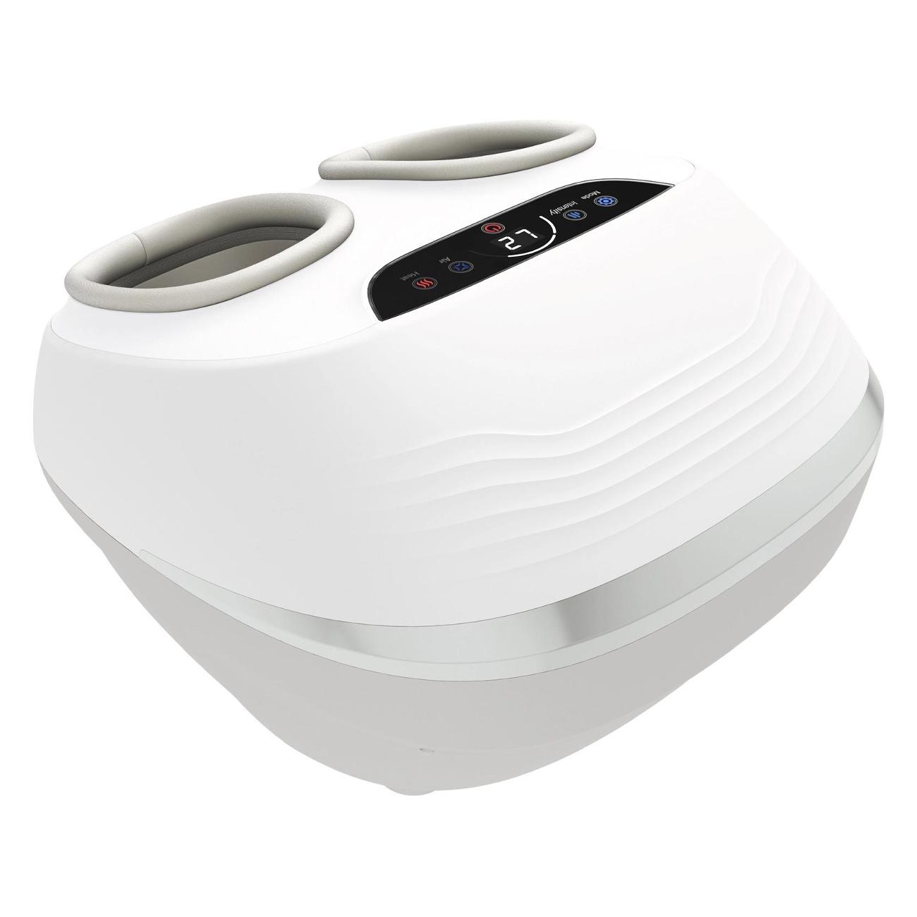 Сенсорная панель управления со светодиодными индикаторами удобно расположена в верхней части корпуса. Интенсивность компрессии можно регулировать — доступны три уровня. Усилить эффект поможет функция прогрева. Предустановлены три автоматические программы: «Обновление», «Расслабление», «Здоровье». Гибкий подход позволит персонализировать работу прибора в зависимости от индивидуальных предпочтений и стоящей задачи. Предусмотрен таймер автоматического отключения на 10 минут.
