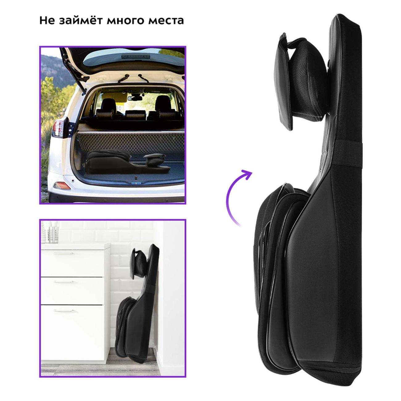 Массажирует несколько зон. Всё регулируется с пульта, высота роликов (очень удобно для шейной зоны), интенсивность массажа (есть три режима), подогрев и вибрация. Так же три автоматических режима и возможность фиксации массажа в нужной зоне. Все режимы отключаются автоматически через 10-15 минут. Пользуемся меньше месяца но очень довольны!