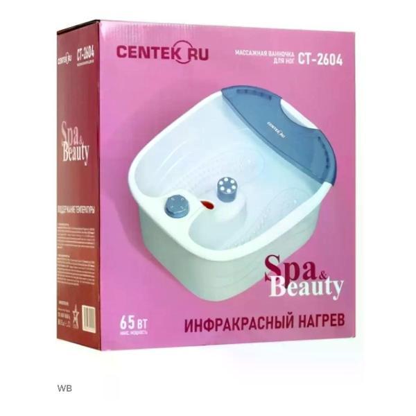 Массаж тела-это отличная форма восстановления. Массаж улучшает кровообращение, общий кровоток, увеличивают приток кислорода к тканям, что способствует снижению мышечного напряжения. Если у вас нет времени на посещения спа-центров и массажных салонов, электрические массажеры торговой марки CENTEK- это отличный вариант. Ванночка для ног CT-2604 : Цвет - Белый/Синий; Мощность - 65 Вт; Количество режимов работы - 3; Массажные ролики; Автоматический подогрев; Акупунктурное покрытие дна; Защита от разбрызгивания воды; Отверстие для слива воды.