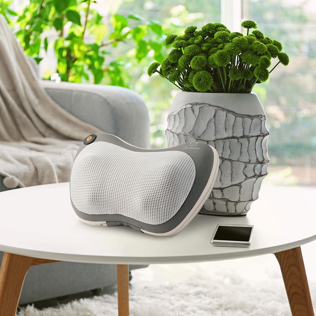 Мне эту подушку подарили дети. У меня проблема со спиной, а так как массаж у специалиста это слишком дорогое удовольствие, решили пока ограничиться этой подушкой А я и рада. Ездить никуда не нужно, дома, в любой момент, достал подушку и использовал ее. Ролики работают в двух направлениях, чехол снимается, есть таймер отключения через 15 минут.