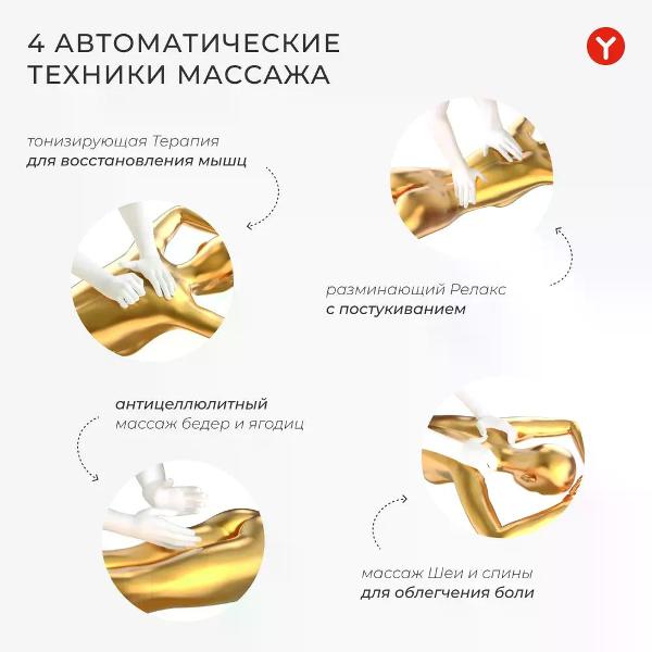 Массажное кресло Yamaguchi Ewok бежевого цвета оказывает вибрационное, воздушно-компрессионное, разминающее и точечное воздействие на все тело. Техника восстановления Чоппинг массажа помогает снять мышечное напряжение и моментально оживиться, техника разминания шеи Master Shiatsu быстро «разбивает» триггерные точки, расслабляя усталые мышцы. Можно выбирать отдельные зоны (четыре автоматические программы), интенсивность регулируется на трех уровнях. Настройки устанавливаются с помощью кнопочного пульта, встроенного в подлокотник. Встроены функции аэромассажа и вытяжение позвоночника.
