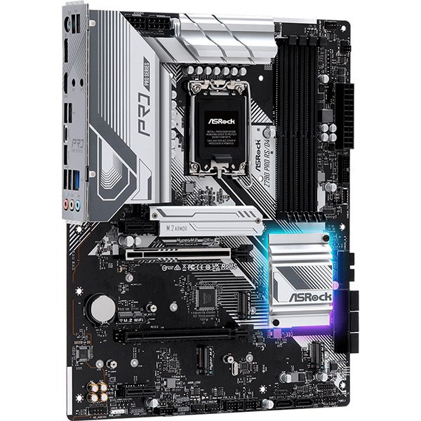 Материнская плата Asrock Z790 PRO RS/D4 оснащена шестью слотами расширения, двумя видеовыходами: DisplayPort, HDMI. Форм-фактор модели — М.2. Габариты — 24,4х30,5 см. Вес изделия с упаковкой — 1,56 кг. Присутствуют восемь контроллеров SATA III, четыре слота памяти DDR4, разъем М.2 Key E для подсоединения модуля Wi-Fi. Модель сочетается с процессорами Intel Core 12го, 13го и 14го поколения. Объем оперативной памяти — до 128 ГБ. Присутствует поддержка NVMe. Питание платы осуществляется с помощью разъема 24 pin.