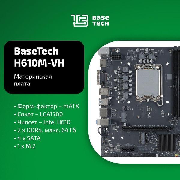 Вы можете купить Материнская плата BaseTech BT-H610M-VH в магазинах М.Видео по доступной цене. Материнская плата BaseTech BT-H610M-VH: подробное описание, фото и отзывы реальных покупателей, характеристики, возможность скачать инструкции и подобрать аксессуары.