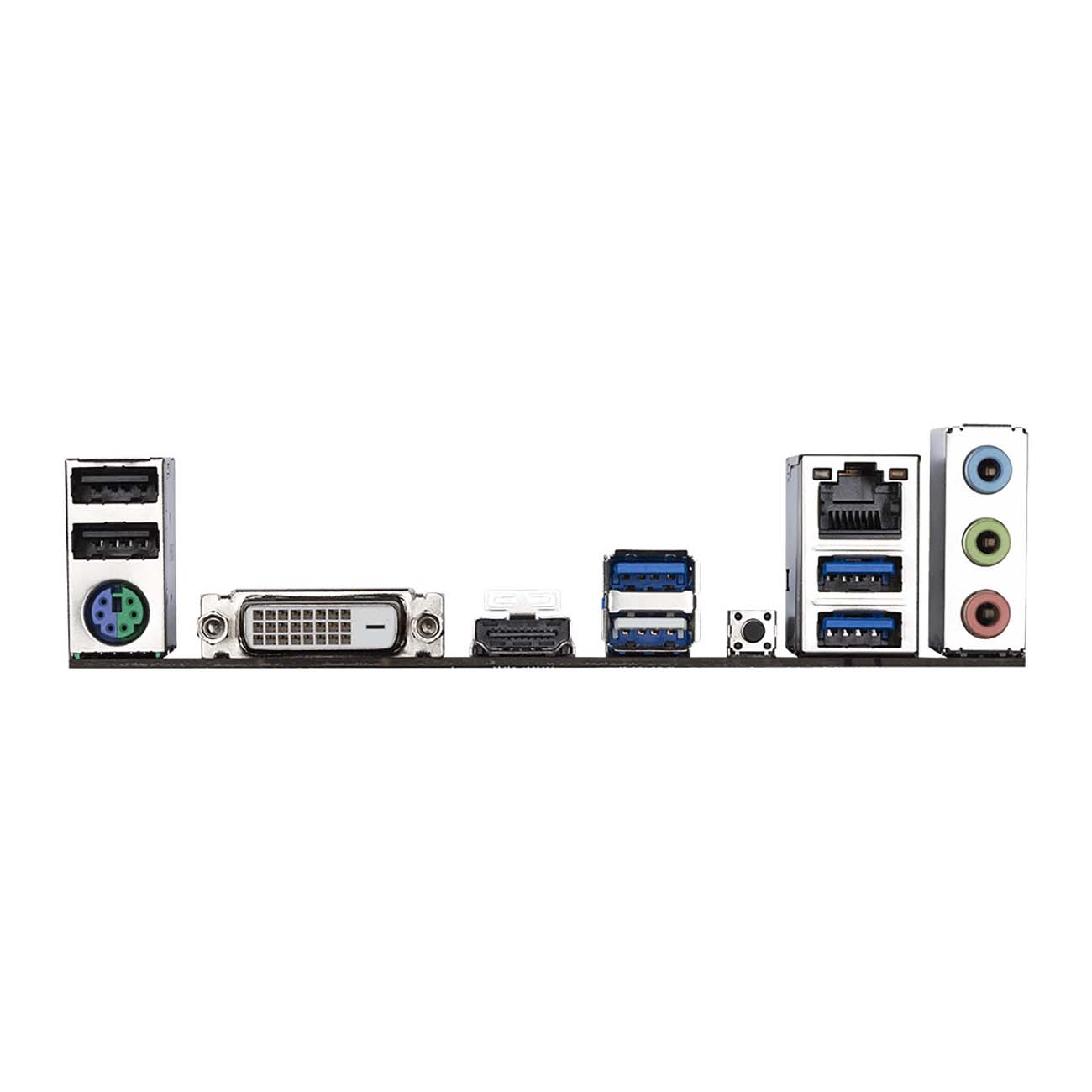 На задней панели находятся разъем LAN с поддержкой Gigabit Ethernet и три 3,5-миллиметровых аудиоразъема. Также есть порты USB и вход PS/2 для подсоединения клавиатуры либо мыши. Изображение выводится на монитор через DVI и HDMI.