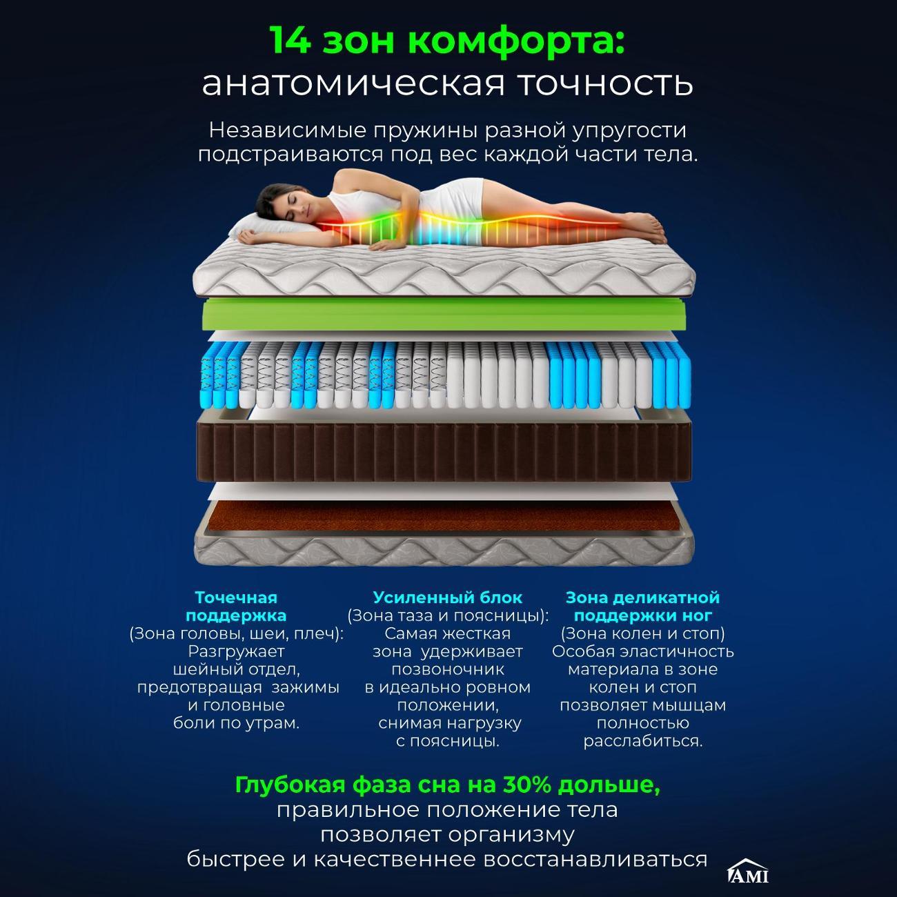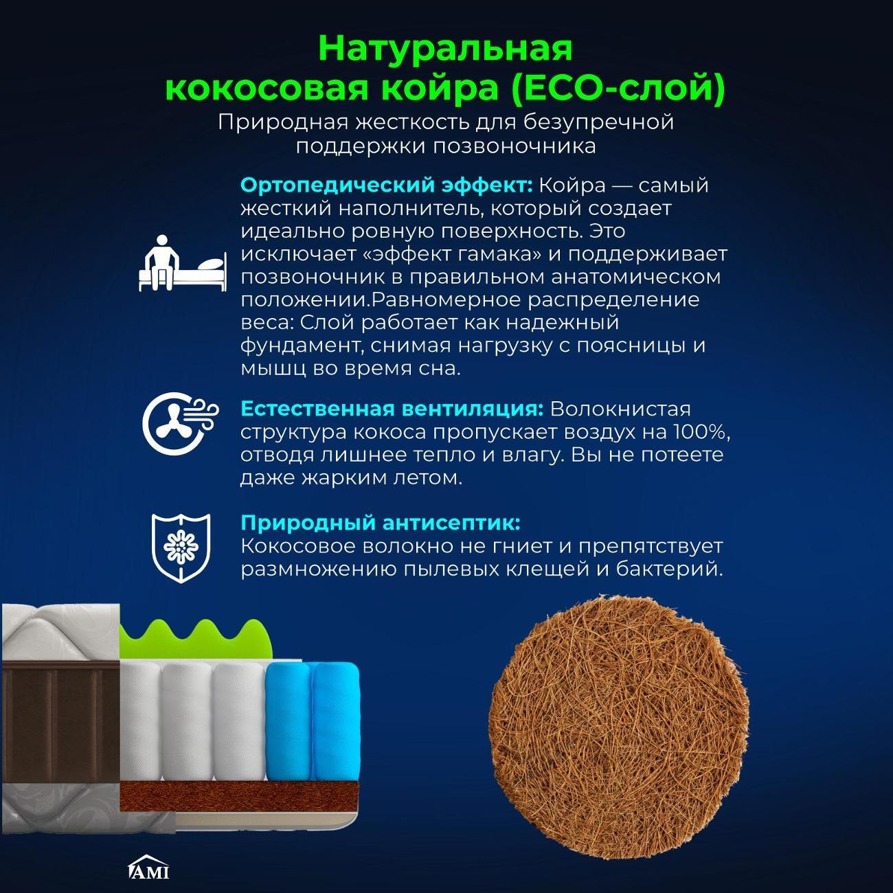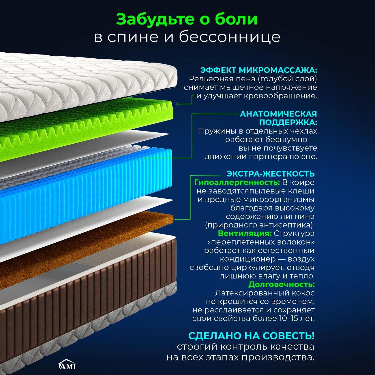 Ортопедический матрас размером 90x200 см — отличное решение для комфортного и здорового сна. Блок независимых пружин Antinoise+ обеспечивает точечную поддержку позвоночника, подстраиваясь под изгибы вашего тела, а также снижает уровень шума при движениях. Бесшумная работа пружин и дышащие материалы создают необходимые условия для полноценного отдыха.