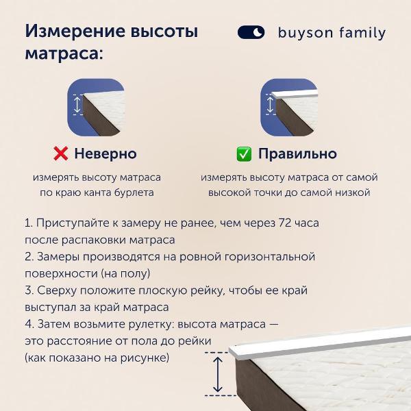 Вы можете купить Матрас buyson 180х200 см, независимые пружины, BuyRoyal в магазинах М.Видео по доступной цене. Матрас buyson 180х200 см, независимые пружины, BuyRoyal: подробное описание, фото и отзывы реальных покупателей, характеристики, возможность скачать инструкции и подобрать аксессуары.