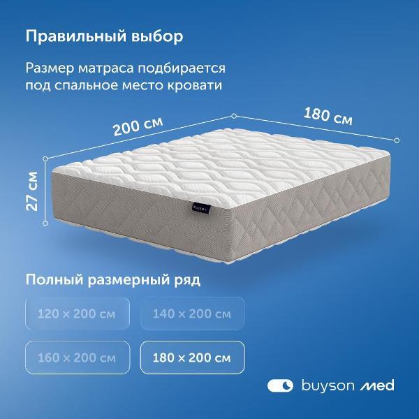 Вы можете купить Матрас buyson Матрас 180х200, независимые пружины, ProHarmony в магазинах М.Видео по доступной цене. Матрас buyson Матрас 180х200, независимые пружины, ProHarmony: подробное описание, фото и отзывы реальных покупателей, характеристики, возможность скачать инструкции и подобрать аксессуары.