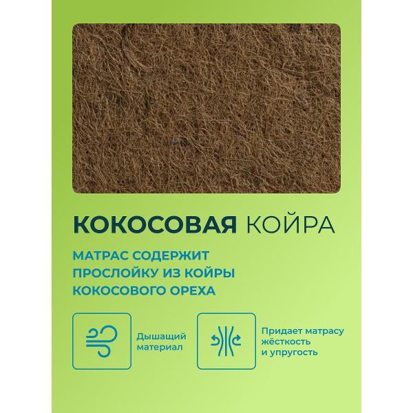 При этом, покупая Матрас Деско ТФК, Вы получаете качественную поддержку Вашего позвоночника, оптимальную мягкость для снятия нагрузки с мышц, экологичность спального места, комфортный микроклимат на поверхности матраса. Сочетание ППУ высотой 2 см и кокосовой койры высотой 1 см подарят незабываемые ощущения.