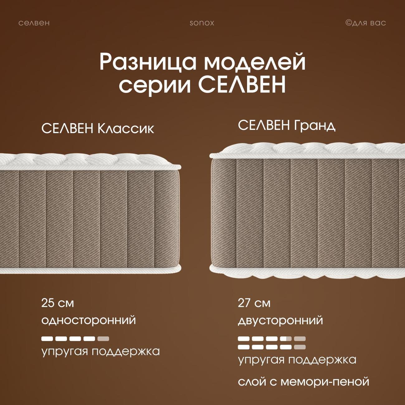 СЕЛВЕН Гранд 27 см — премиальный двусторонний матрас для тех, кто ценит универсальность и хочет адаптировать ощущения сна под сезон или самочувствие. СЕЛВЕН Гранд сочетает плотную поддержку и комфорт, сохраняя стабильность и ощущение собранности.