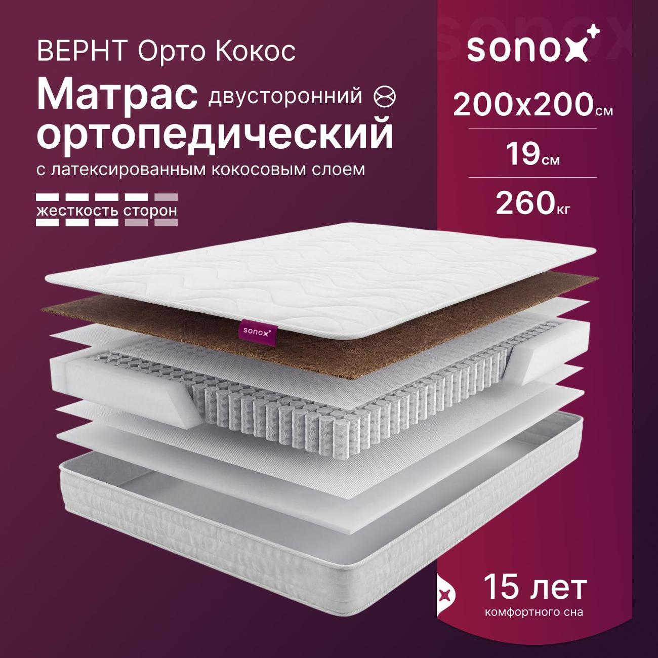 Ортопедический пружинный матрас ВЕРНТ Орто Кокос средней жесткости.