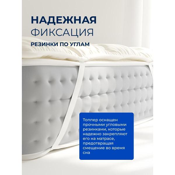 Тип крепления: резинки по углам. Они надежно фиксируют топпер на матрасе.