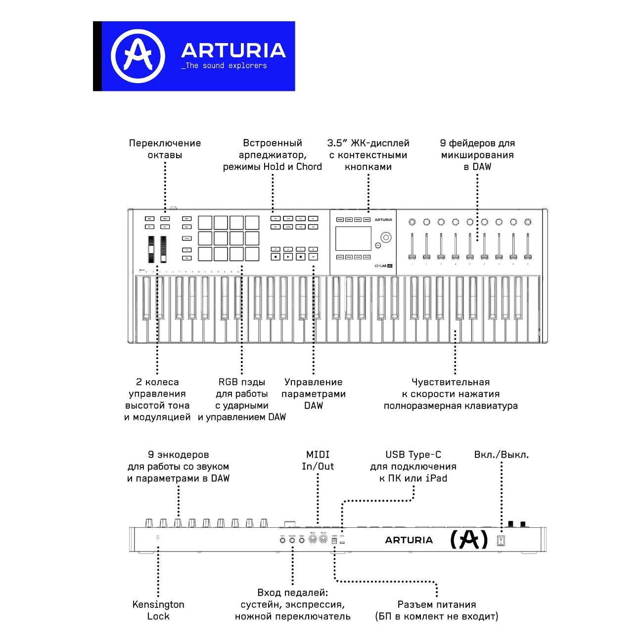 Вы можете купить MIDI клавиатура Arturia KeyLAB в магазинах М.Видео по доступной цене. MIDI клавиатура Arturia KeyLAB: подробное описание, фото и отзывы реальных покупателей, характеристики, возможность скачать инструкции и подобрать аксессуары.