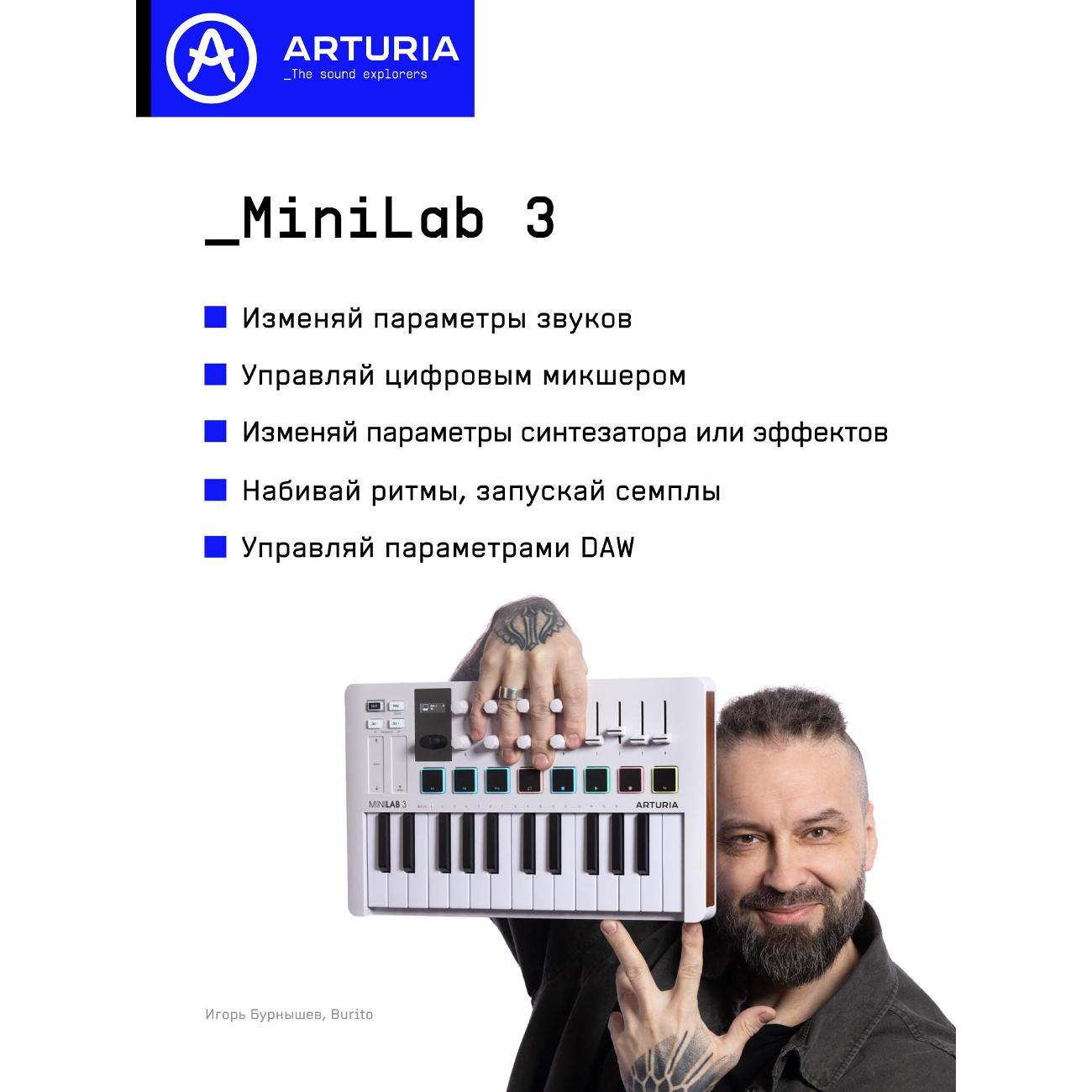 Вы можете купить MIDI клавиатура Arturia MiniLAB в магазинах М.Видео по доступной цене. MIDI клавиатура Arturia MiniLAB: подробное описание, фото и отзывы реальных покупателей, характеристики, возможность скачать инструкции и подобрать аксессуары.