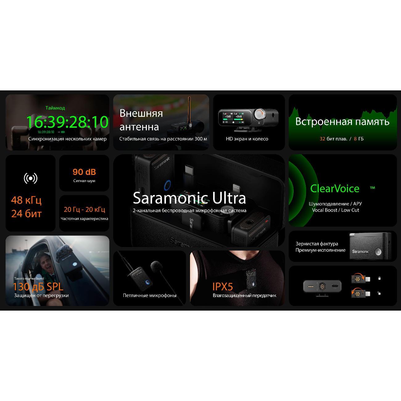 Вы можете купить Микрофон беспроводной Saramonic Ultra 02 в магазинах М.Видео по доступной цене. Микрофон беспроводной Saramonic Ultra 02: подробное описание, фото и отзывы реальных покупателей, характеристики, возможность скачать инструкции и подобрать аксессуары.