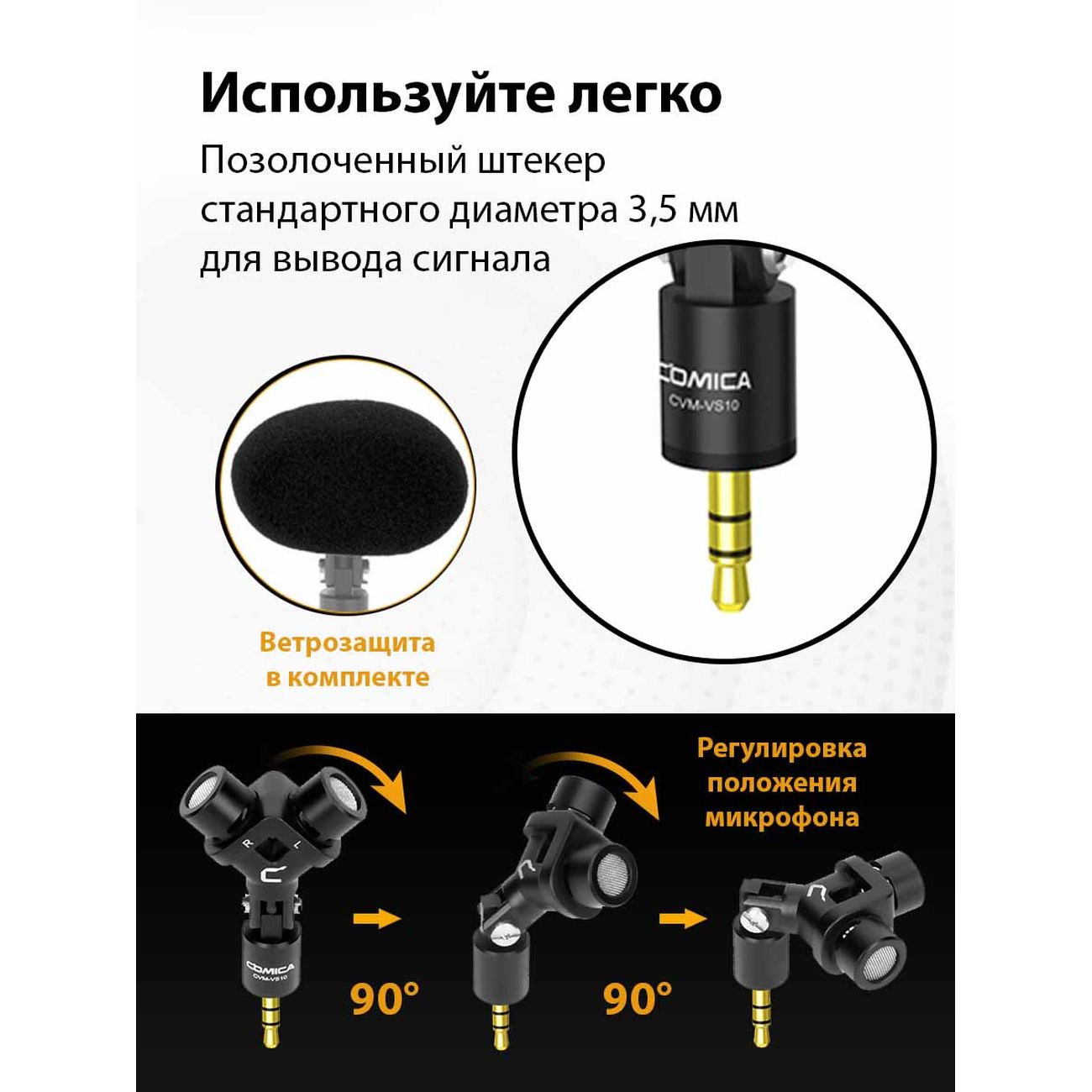 Микрофон CoMica CVM-VS10 — это компактная модель, отличающаяся полярной диаграммой направленности, позволяющей записать звук в высоком качестве. Корпус микрофона изготовлен из износостойкого металла. Благодаря ударопрочности металла при использовании устройства не будут появляться вибрации. Чувствительность модели составляет 100 дБ. Конструкция способна поворачиваться на 90° благодаря использованию шарниров.