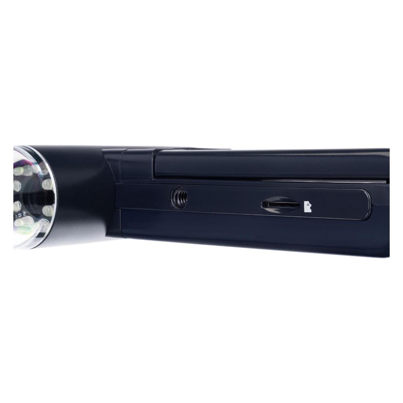 Микроскоп Discovery Artisan 256 для начинающих заключен в черный пластиковый корпус. Модель питается от Li-Ion-аккумулятора, от USB-порта и от сети. Устройство оснащено поворотным цветным ЖК-экраном диагональю 3" и светодиодной подсветкой, яркость которой можно регулировать. При разрешении матрицы 12 Мп увеличение составляет 20–500 крат. Вес конструкции составляет 700 г.