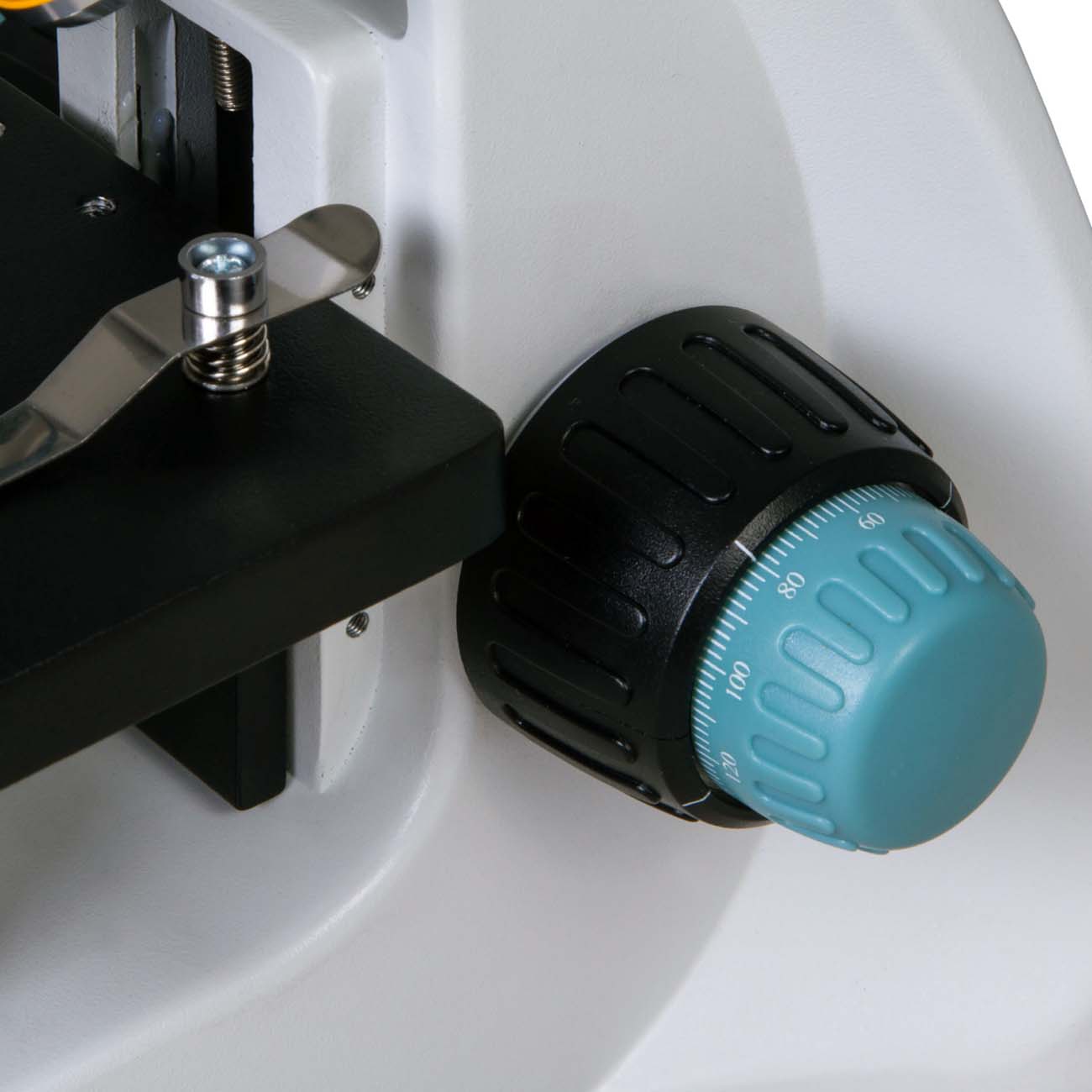 Эта модель предназначена для проведения профессиональных анализов, в том числе методом светлого поля и с применением масляной иммерсии. Микроскоп увеличивает исследуемые частицы в 40-400 раз. Окулярный аппарат наклонён на 30°. Во время длительной работы не будет уставать шея. Поворотная насадка вращается на 360°. Во время исследования вы сможете быстро переключаться между ахроматическими объективами. Для регулировки резкости есть рукояти точной и грубой фокусировки.