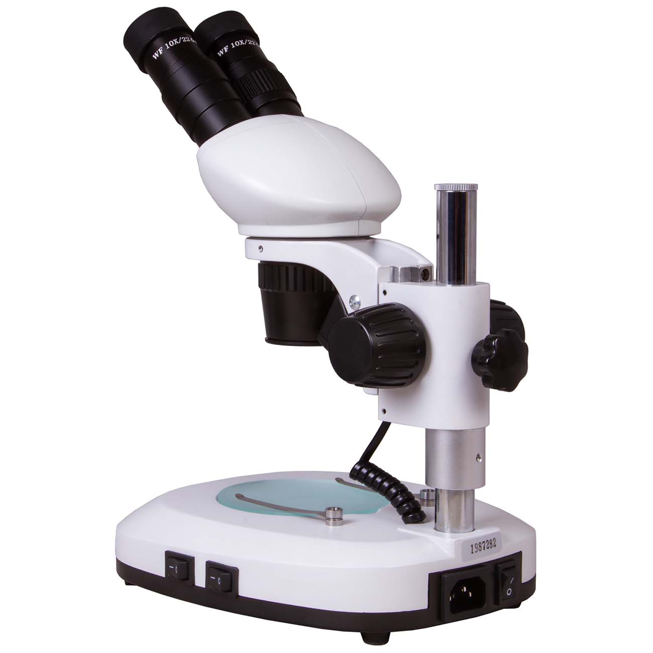 Небольшой наклон бинокулярной насадки и вращение вокруг оси дают возможность долго работать, при этом меньше уставая. Микроскоп оснащён двумя диодами, размещёнными по бокам столика. Элементы позволяют проводить исследования в отражённом и проходящем световом потоке. При необходимости вы сможете отрегулировать яркость.