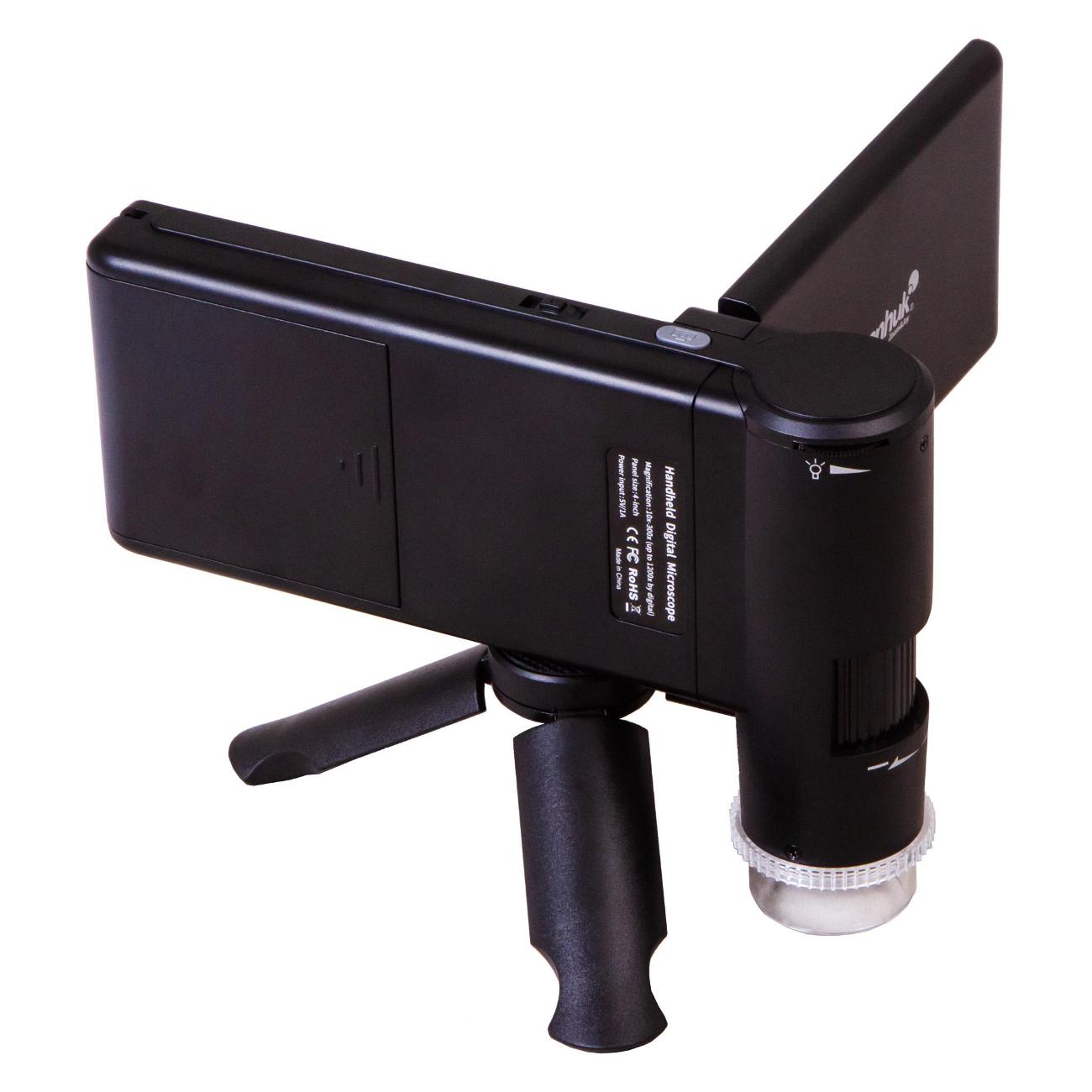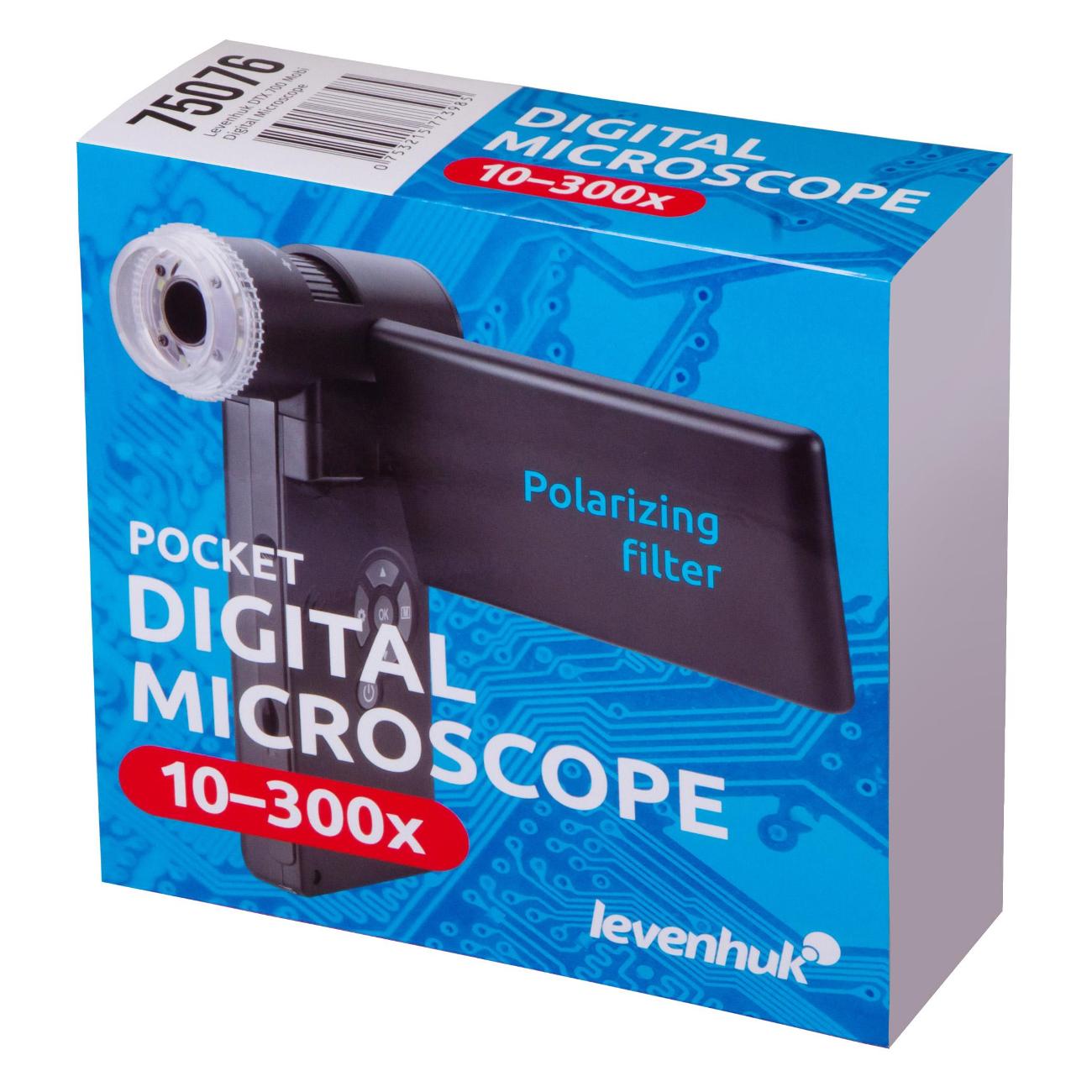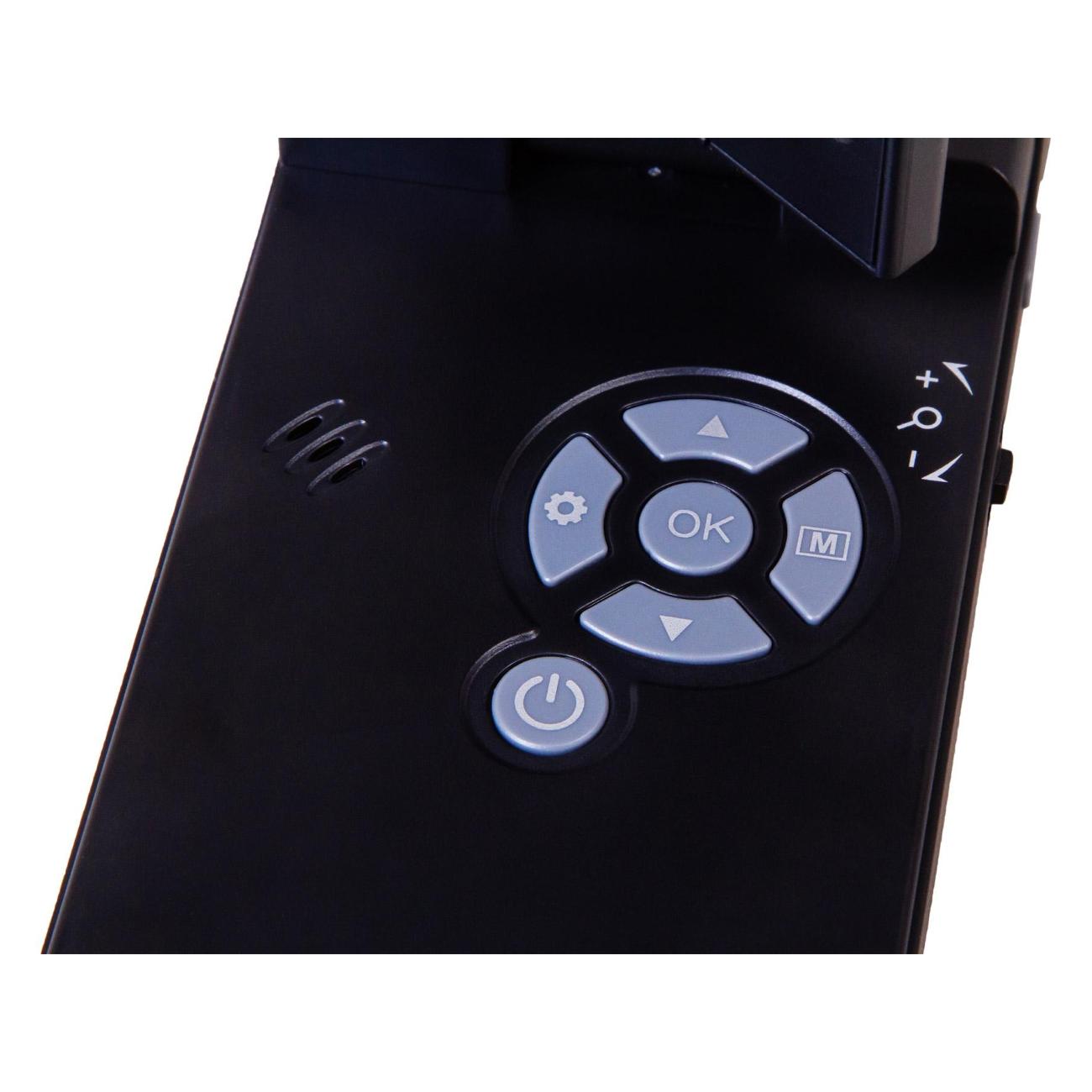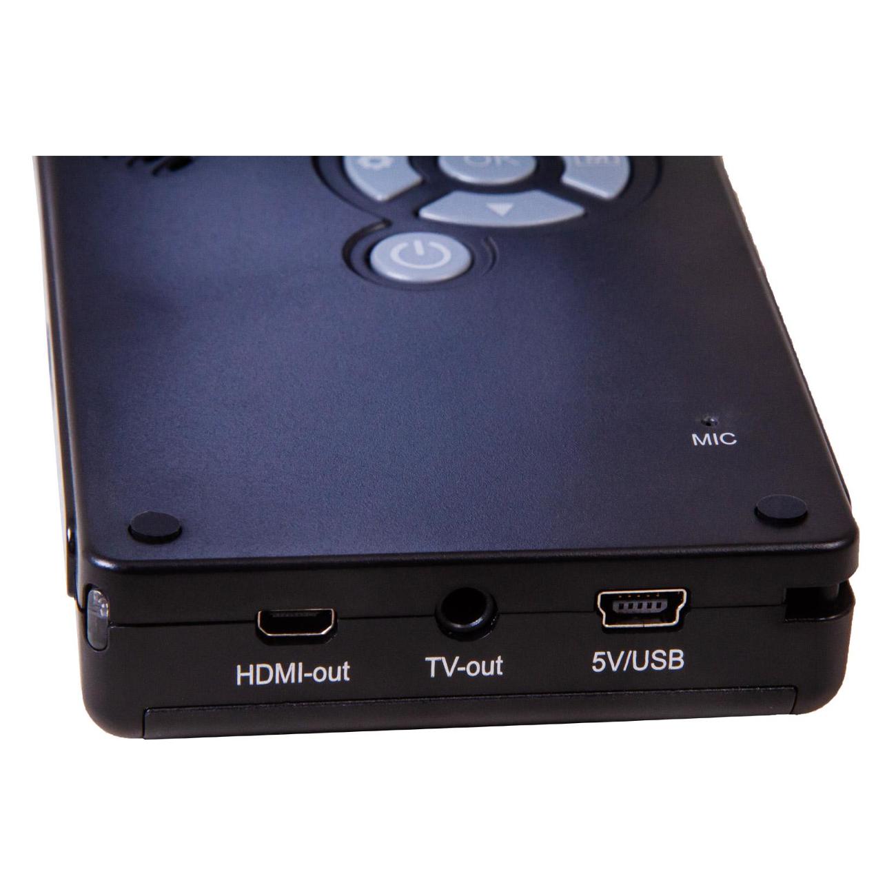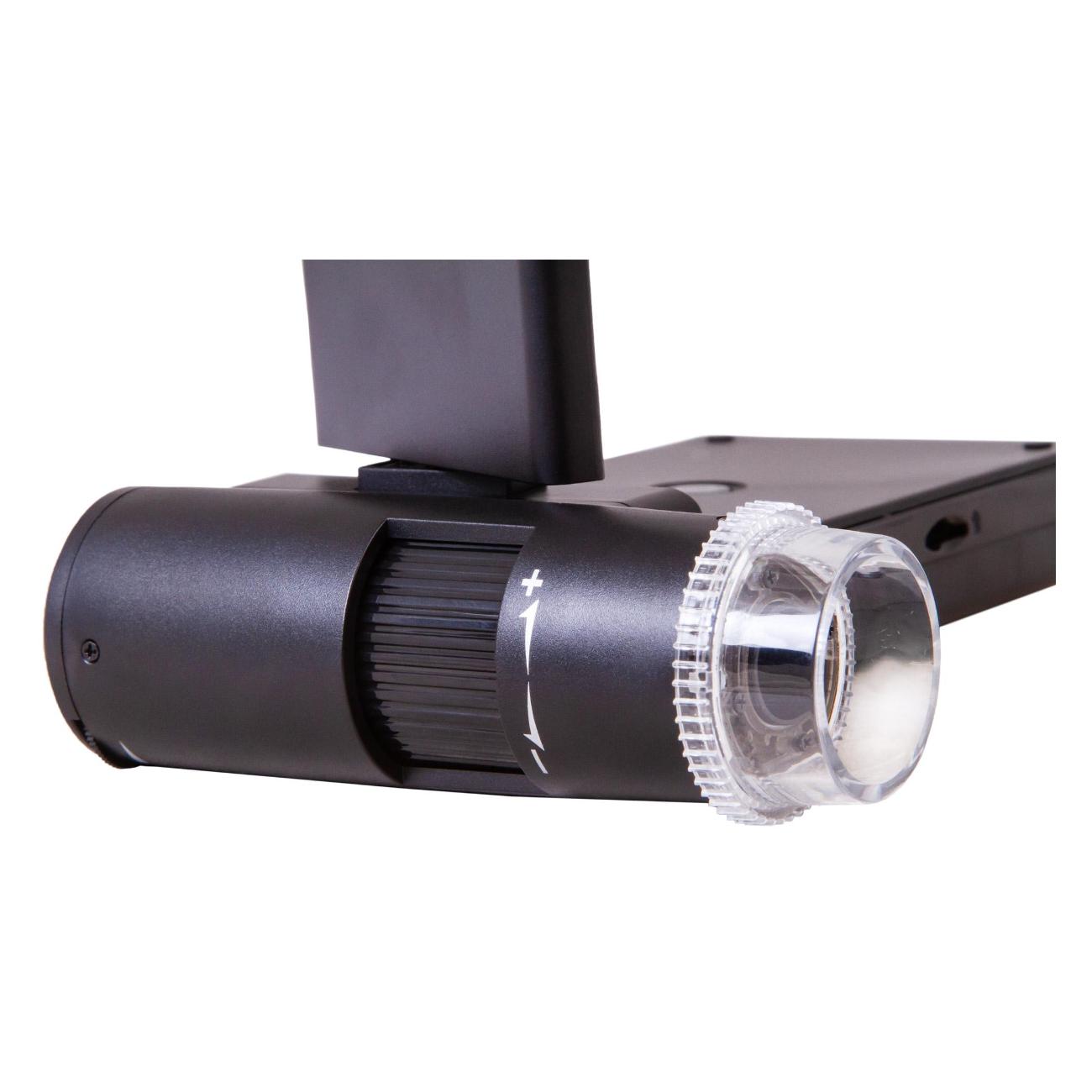 Микроскоп Levenhuk DTX 700 Mobi в пластиковом черном корпусе питается от сети, оснащается Li-Ion-батареей и поддерживает работу от USB-порта. Устройство получило светодиодную подсветку и поворотный цифровой дисплей диагональю 4". Прибор справляется с увеличением 10–300 крат. Вес аппарата не превышает 600 г.