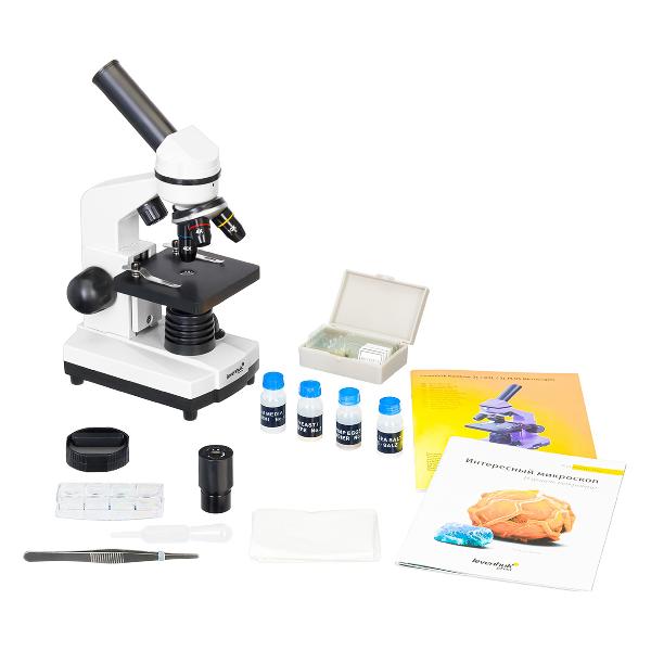 Микроскоп Levenhuk Rainbow 2L Moonstone (69035) заключен в пластиковый корпус белого цвета с подвижным предметным столиком 9х9 см с металлическими зажимами и светодиодной регулируемой подсветкой. Модель питается от трех батареек АА-типа и комплектуется защитным чехлом. Прибор обеспечивает увеличение 40-400 крат и использует окулярную трубку диаметром 2,3 см.