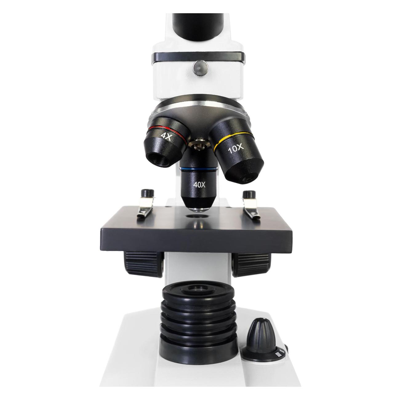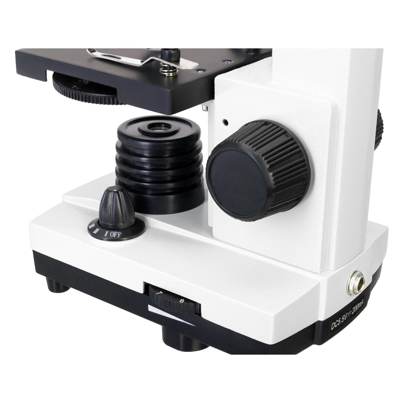 Микроскоп Levenhuk 2L Plus Mn для начинающих питается от сети и поддерживает работу от трех АА-батареек. Устройство заключено в металлический корпус лунного цвета и дополнено предметным столиком размером 90х90 см, который можно перемещать по вертикали. Модель получила светодиодную подсветку с регулировкой яркости, поворотную молекулярную насадку, окулярную трубку диаметром 23,2 мм и револьверное устройство на три объектива. Используемое оптическое стекло обеспечивает увеличение в пределах 64-640 крат. В комплекте поставляется набор для опытов. При габаритах 35х14х22 см вес составляет 1,5 кг.
