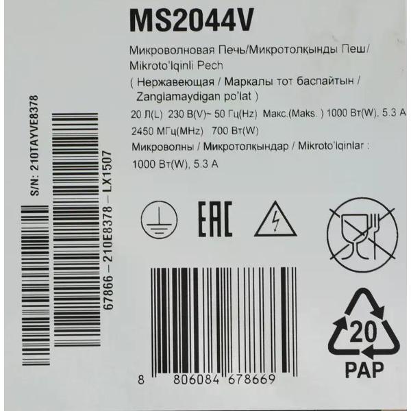 Вы можете купить Микроволновая печь LG MS2044V в магазинах М.Видео по доступной цене. Микроволновая печь LG MS2044V: подробное описание, фото и отзывы реальных покупателей, характеристики, возможность скачать инструкции и подобрать аксессуары.