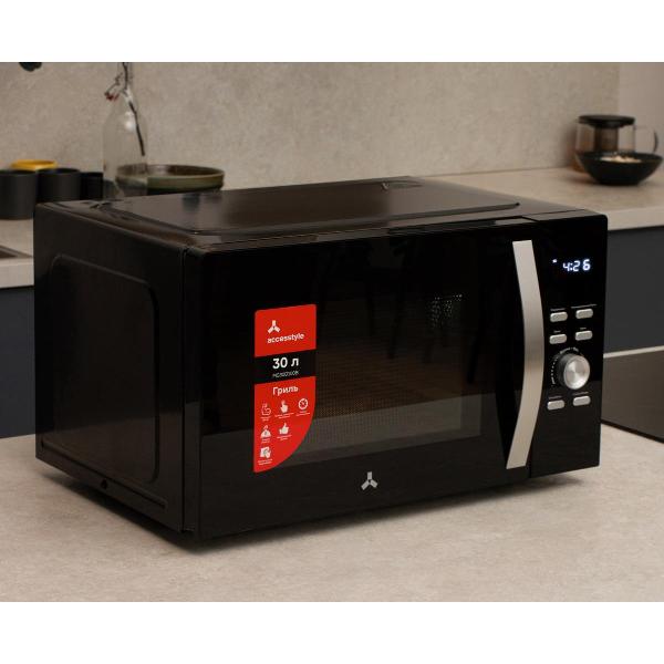 Микроволновая печь Accesstyle MG30D100B в черном корпусе оснащена грилем, работает в восьми режимах, включая автоматическое размораживание. Таймер программируется сроком до 1 часа, мощность микроволн регулируется на пяти уровнях (до 950 Вт).
