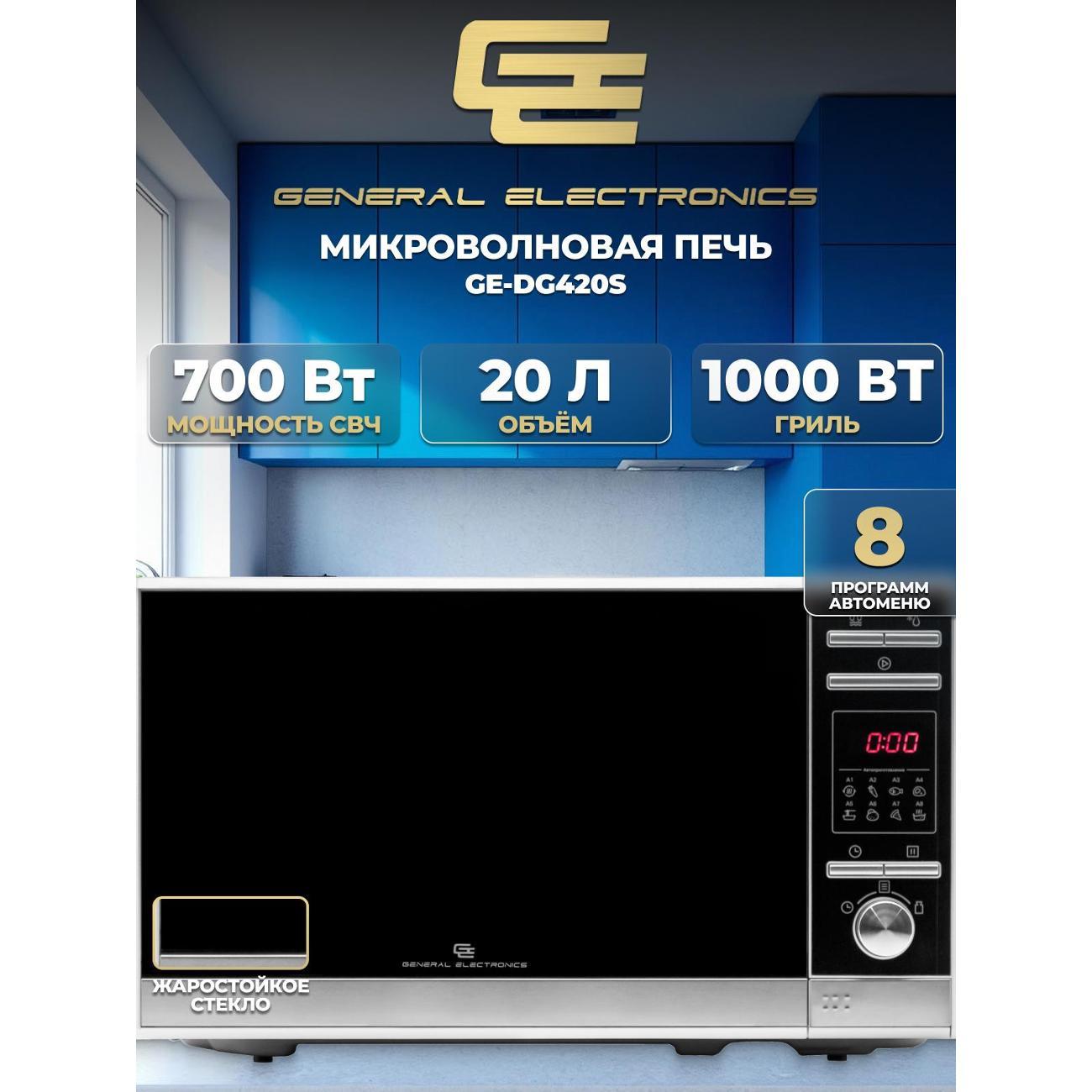 Вы можете купить Микроволновая печь с грилем General Electronics GE-DG420S в магазинах М.Видео по доступной цене. Микроволновая печь с грилем General Electronics GE-DG420S: подробное описание, фото и отзывы реальных покупателей, характеристики, возможность скачать инструкции и подобрать аксессуары.