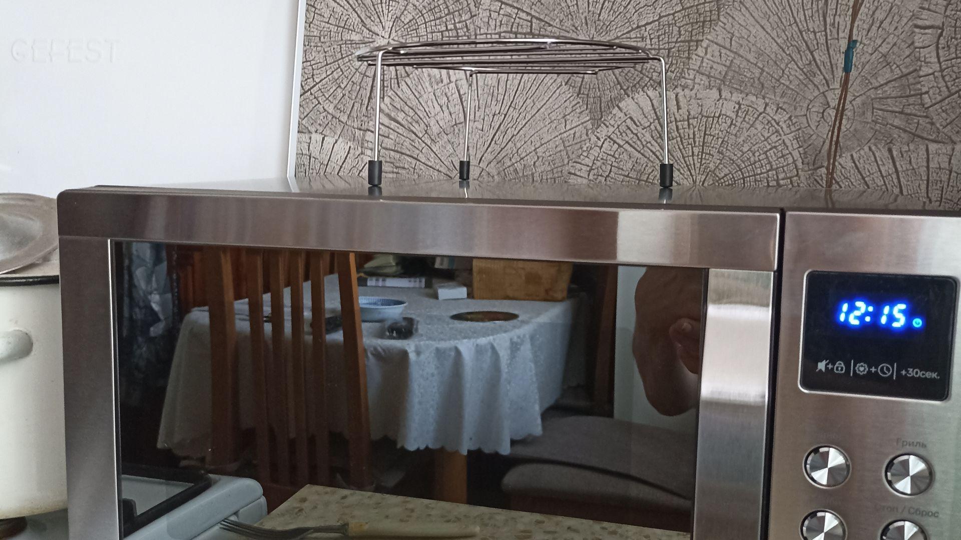 Очень стильная микроволновка, в магазине показалась большой, но по факту компактная, занимает немного места, органично вписалась на кухне, тихий режим работы, нагревает пищу, а не посуду. Легко моется, снаружи также достаточно протереть тряпочкой, никаких отпечатков не видно