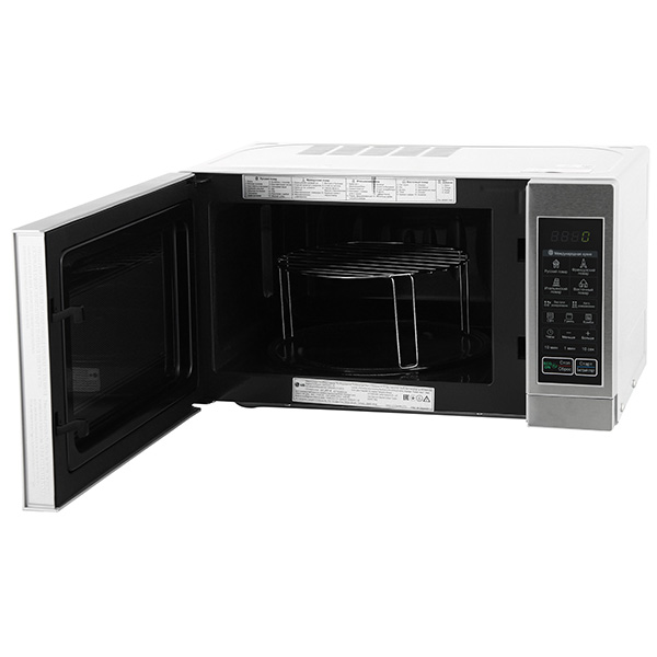 Данная микроволновая печь имеет стандартный размер в 20 литров. Вполне достаточно, что бы положить туда еду в стандартной посуде. Мощность достаточно хорошая. Разогревает все быстро. Микроволновая печь с грилем, очень удобно, можно приготовить еду на грили. Бренд, данный очень хороший, у многих друзей и знакомых микроволновые печи именно LG. Все кнопки сенсорные. Нажимаются очень легко, так же удобно мыть данную печку. Мы сразу в М.Видео приобрели гель для обработки и крышку, что бы удобней было разогревать, еда не разбрызгивается и не пачкает стенки печки. Удобный режим авто размораживания, спокойно закинул что-нибудь из морозилки чуть подождал, и продукт разморожен. В целом микроволновая печь понравилась, качественная, красивая, надежная. Рекомендую.