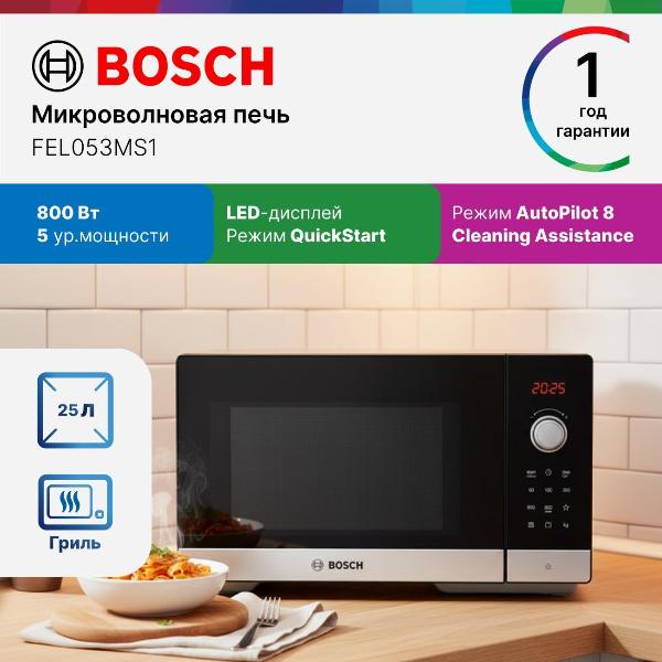 Вы можете купить Микроволновая печь соло Bosch FEL053MS1 в магазинах М.Видео по доступной цене. Микроволновая печь соло Bosch FEL053MS1: подробное описание, фото и отзывы реальных покупателей, характеристики, возможность скачать инструкции и подобрать аксессуары.