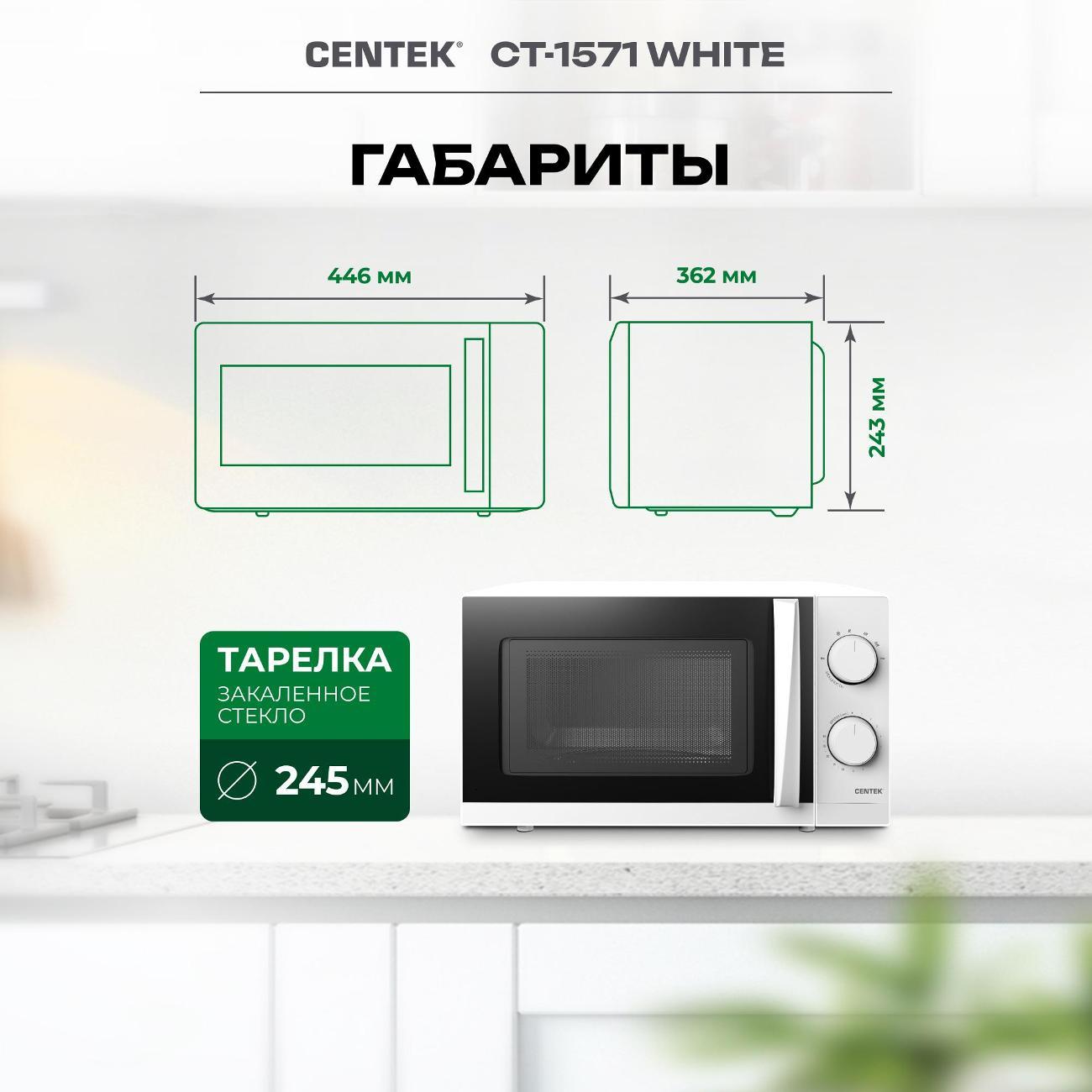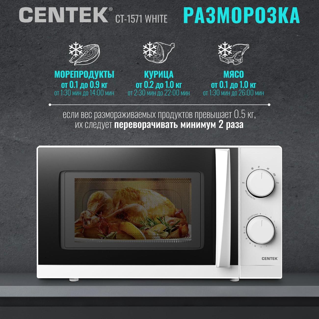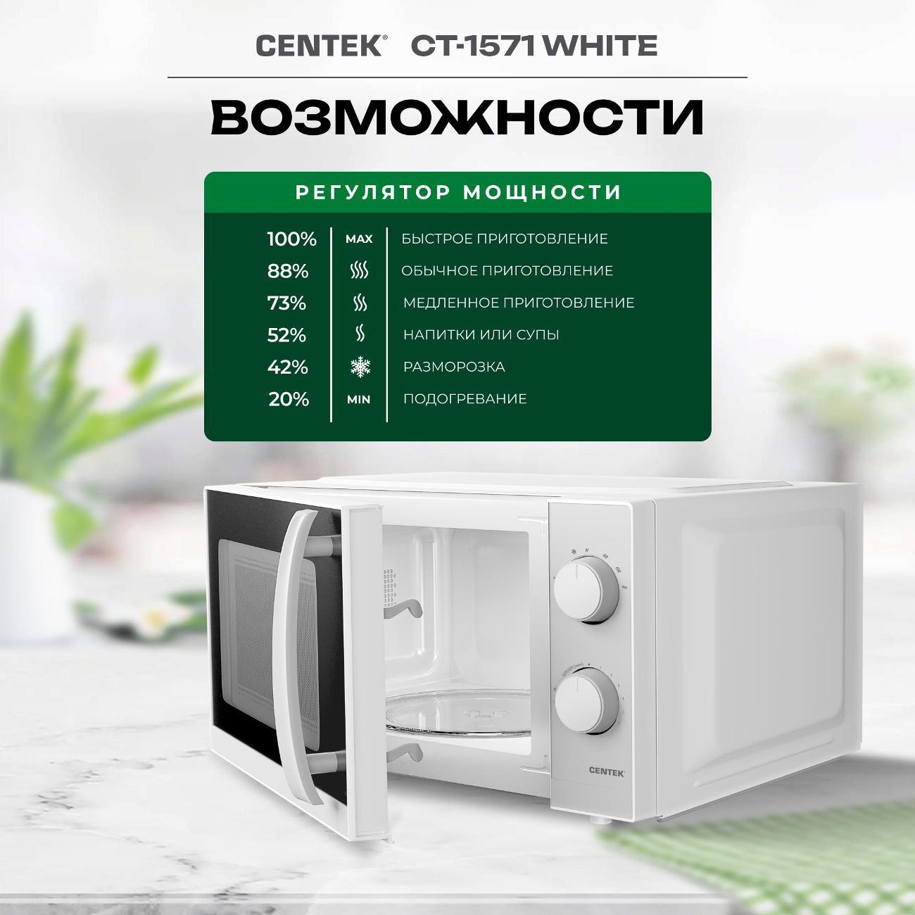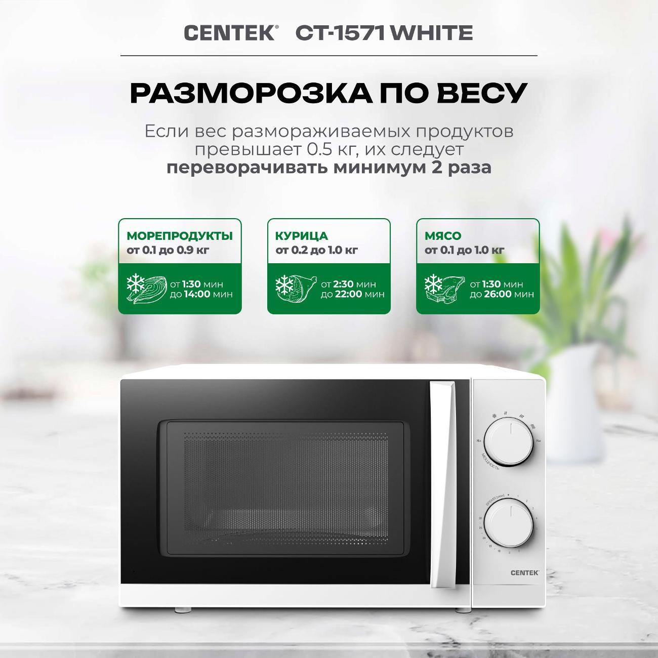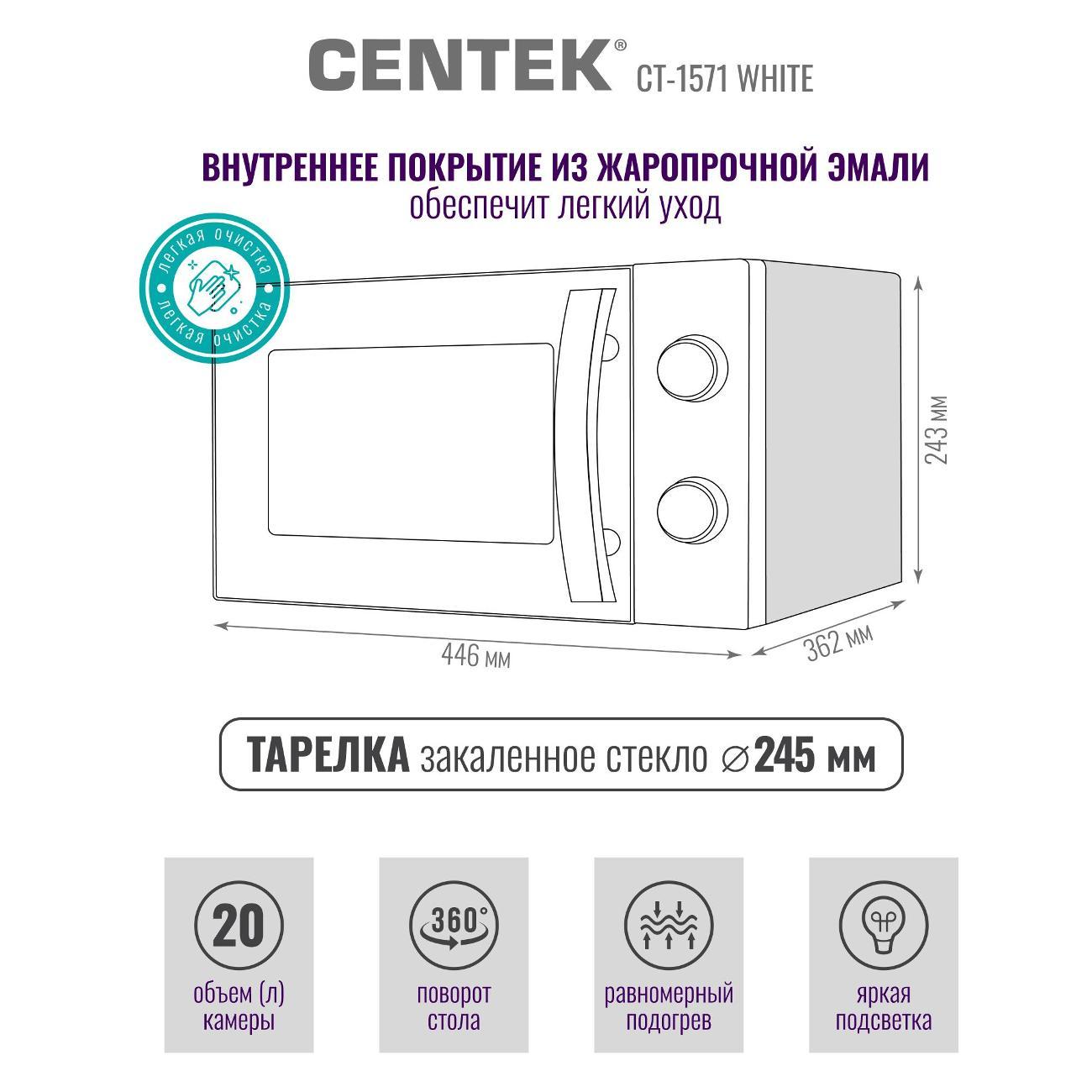 Вы можете купить Микроволновая печь соло Centek CT-1571 White в магазинах М.Видео по доступной цене. Микроволновая печь соло Centek CT-1571 White: подробное описание, фото и отзывы реальных покупателей, характеристики, возможность скачать инструкции и подобрать аксессуары.