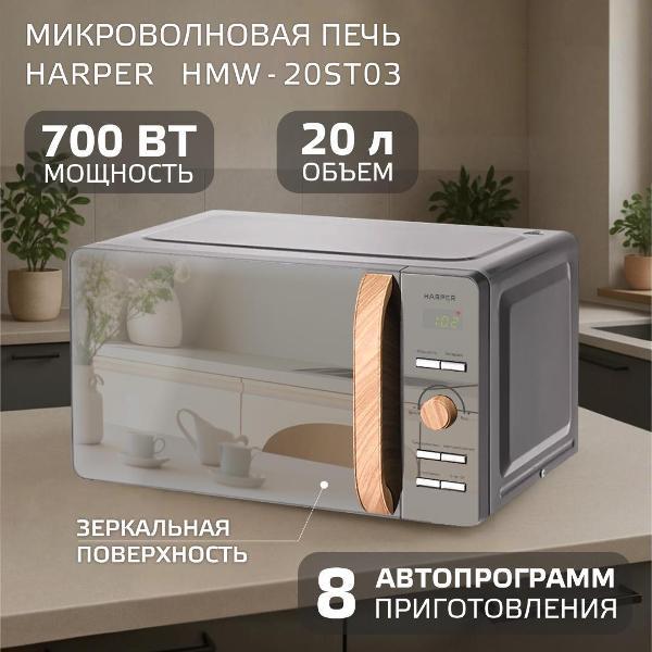 Вы можете купить Микроволновая печь соло Harper HMW-20ST03 Grey в магазинах М.Видео по доступной цене. Микроволновая печь соло Harper HMW-20ST03 Grey: подробное описание, фото и отзывы реальных покупателей, характеристики, возможность скачать инструкции и подобрать аксессуары.