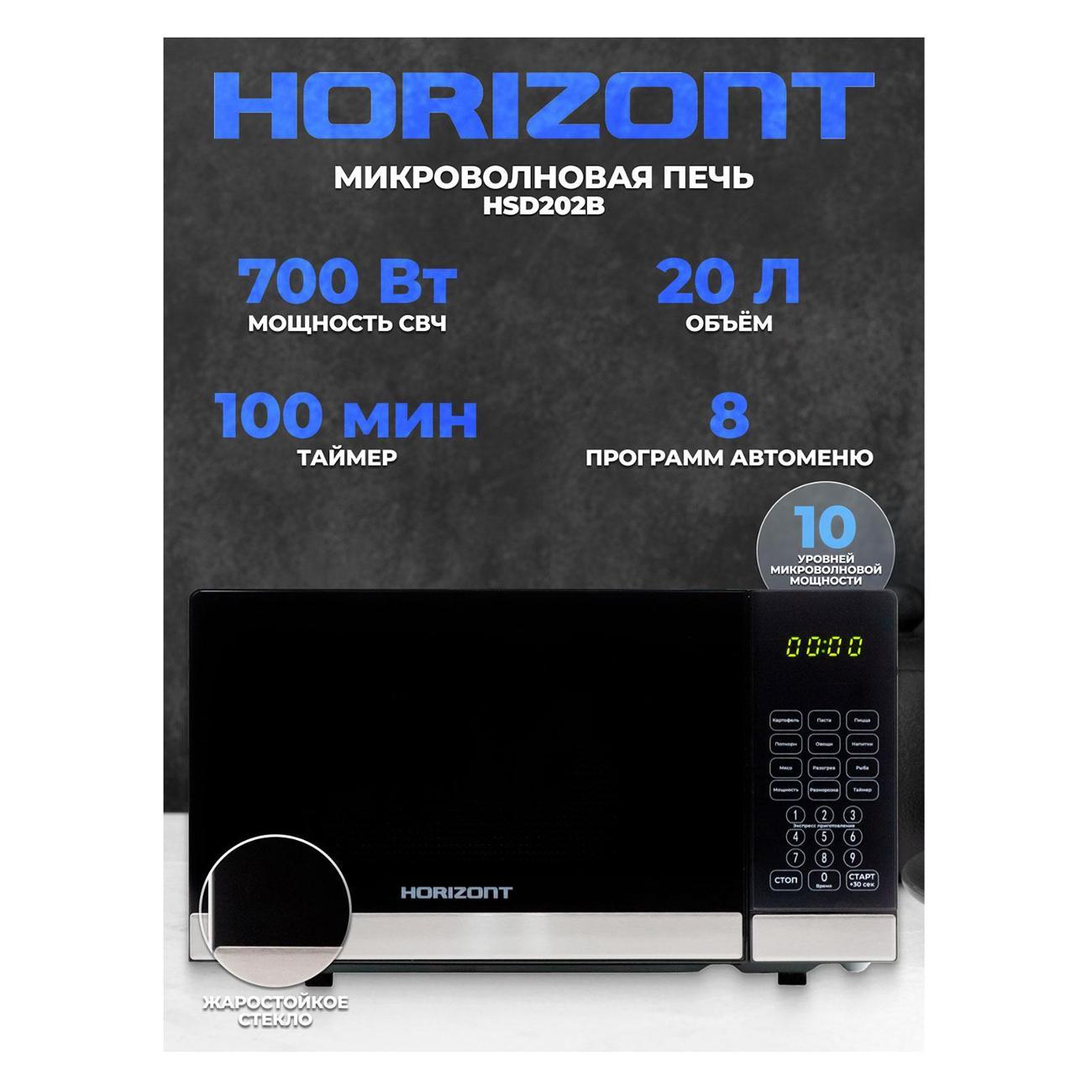 Вы можете купить Микроволновая печь соло Horizont HSD202B в магазинах М.Видео по доступной цене. Микроволновая печь соло Horizont HSD202B: подробное описание, фото и отзывы реальных покупателей, характеристики, возможность скачать инструкции и подобрать аксессуары.