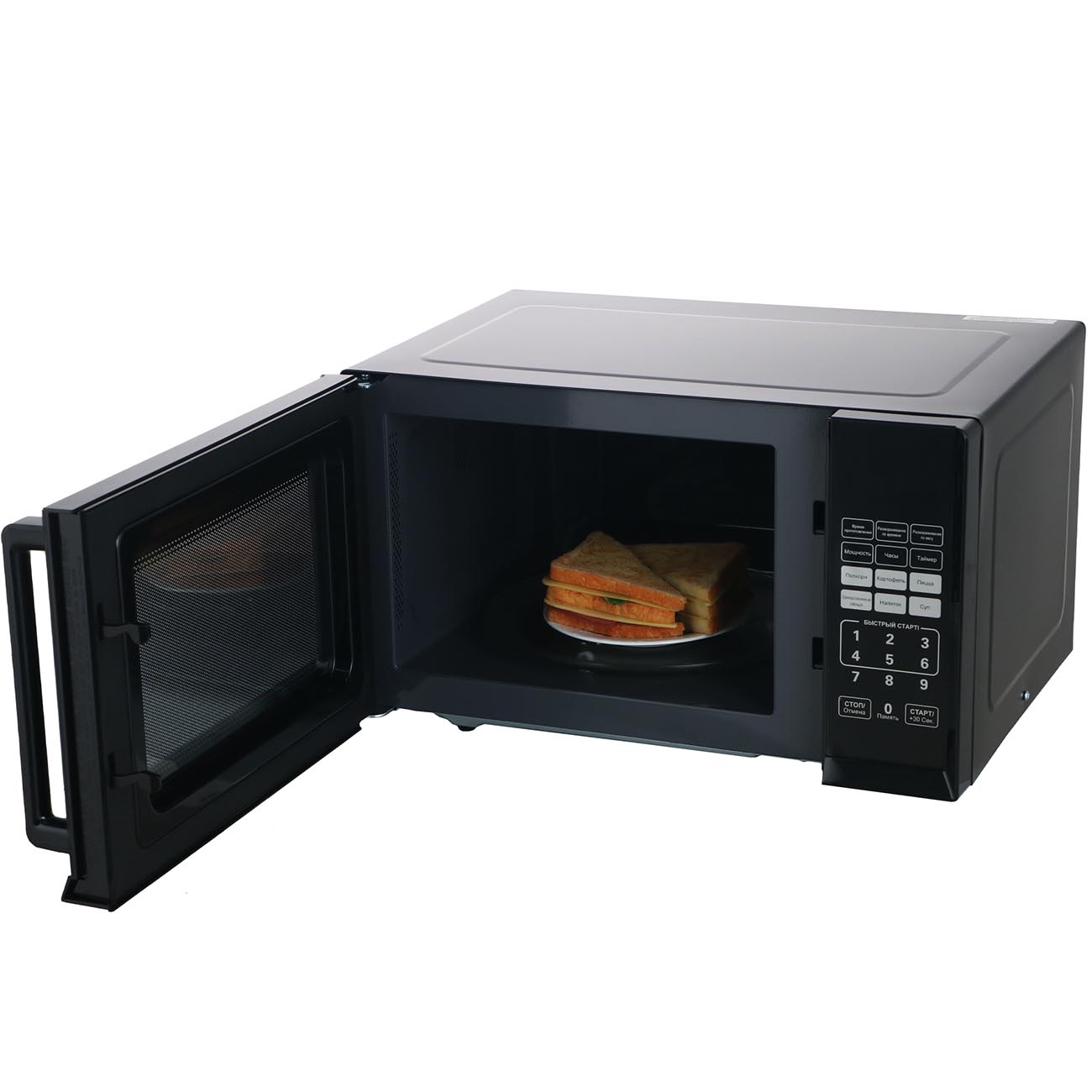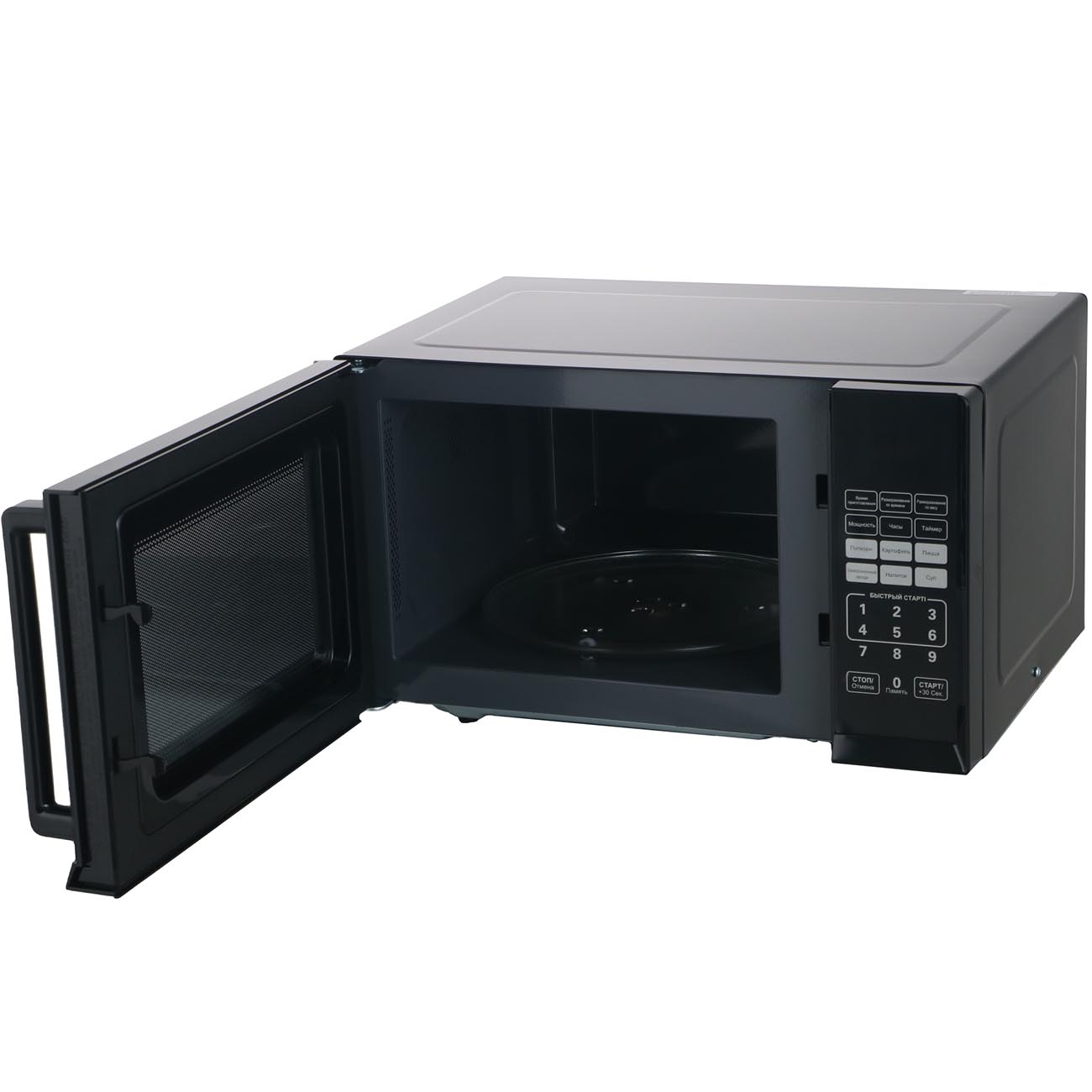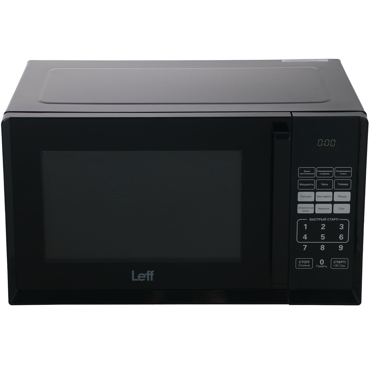 Микроволновая печь соло Leff 23MD802B объемом 23 л подойдет для размещения на маленьких кухнях благодаря небольшим габаритам — 29,5x37,5x49 см. Максимальный показатель потребляемой мощности составляет 1250 Вт. Основная часть корпуса устройства выполнена из пластика, в дверце установлено жаропрочное стекло. Внутренняя область сделана из металла, покрытого эмалью легкой очистки, которая дополнительно защищает от образования коррозии.