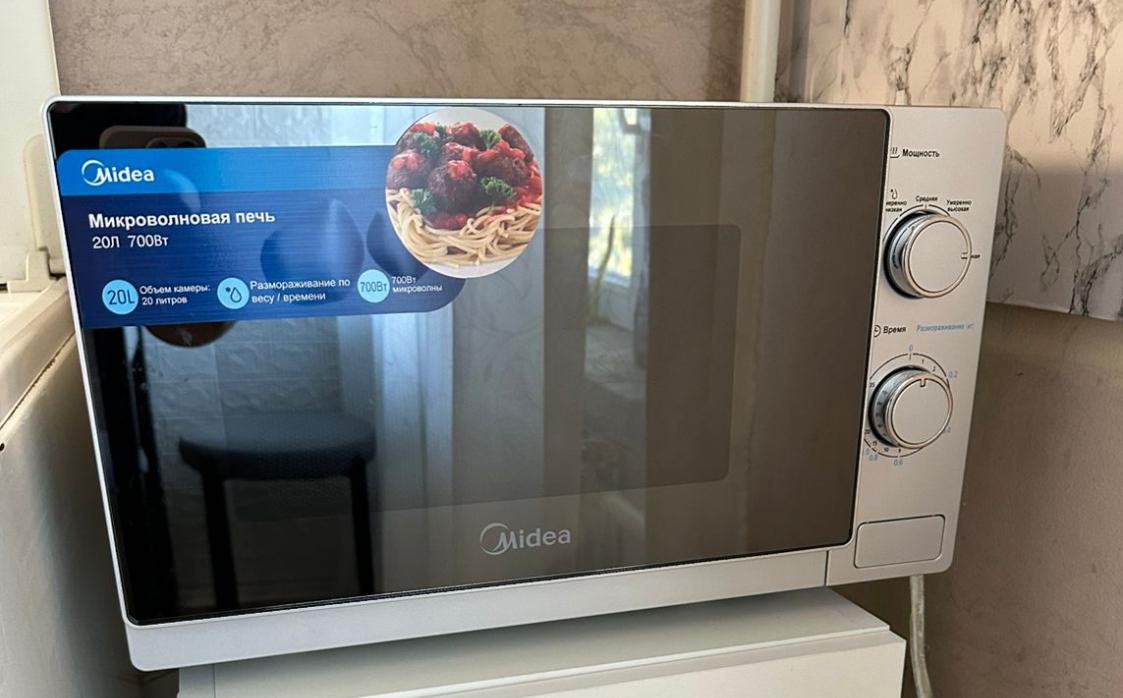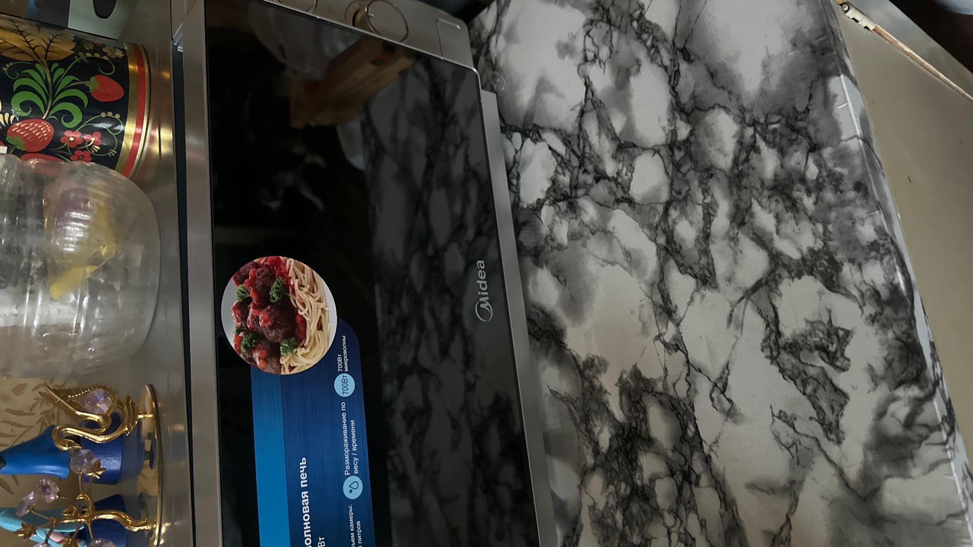Микроволновка средних размеров, вполне впишется в любую кухню и на любой стол, расцветки и дизайн нельзя сказать что исключительные, но гамма и вариации будут смотреться гармонично и с кухонной техникой и с варочной поверхностью, как бы в тандеме. яЗащитная плёнка при распаковке снялась достаточно легко. Сам прибор не тяжёлый, можно свободно перемещать по кухонной поверхности. Управление простейшее, ну и для этого она и покупалась - разогрев. Входит и широкая тарелка и специальная нахлобучка на нее, чтобы брызги не летели по сторонам. Сигнал окончания цикла механический, звонкий. Мощность не большая, не маленькая 800...на максимуме. Со своей задачей вполне справиться.