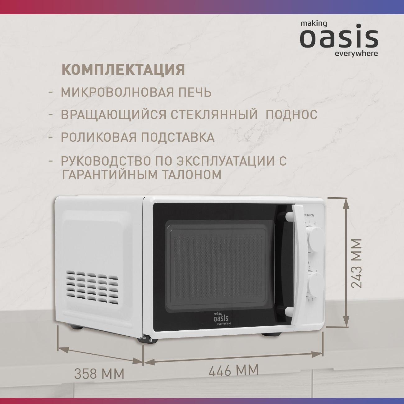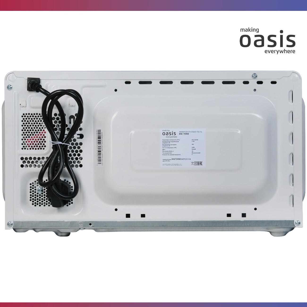 Вы можете купить Микроволновая печь соло Oasis MW-70MW в магазинах М.Видео по доступной цене. Микроволновая печь соло Oasis MW-70MW: подробное описание, фото и отзывы реальных покупателей, характеристики, возможность скачать инструкции и подобрать аксессуары.