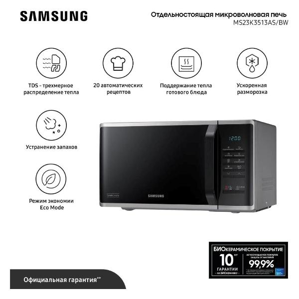 Вы можете купить Микроволновая печь соло Samsung MS23K3513AS/BW в магазинах М.Видео по доступной цене. Микроволновая печь соло Samsung MS23K3513AS/BW: подробное описание, фото и отзывы реальных покупателей, характеристики, возможность скачать инструкции и подобрать аксессуары.