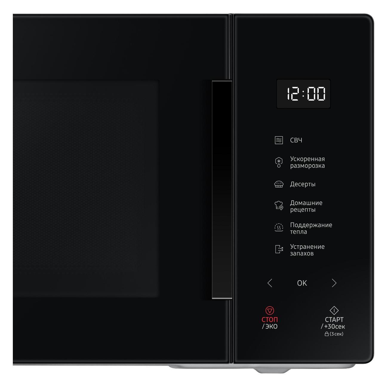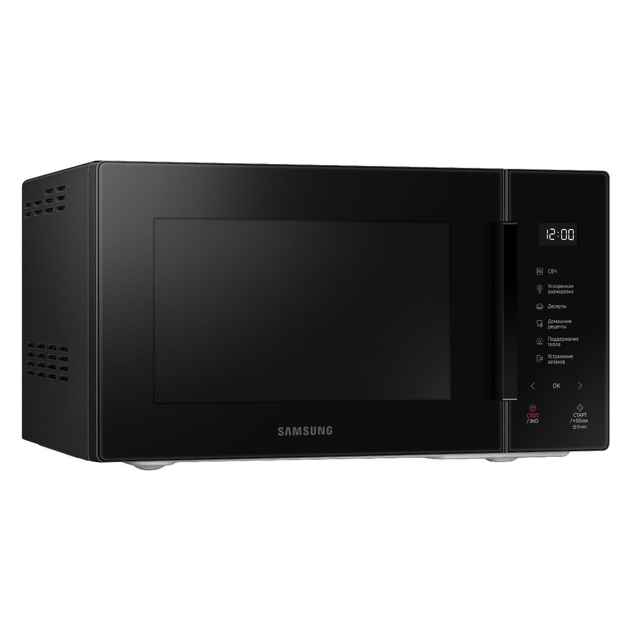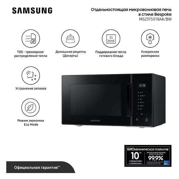 Микроволновая печь соло Samsung MS23T5018AK/BW — надежный помощник на кухне с широким набором функций. Модель объемом 23 литра оснащена биокерамическим покрытием камеры, устойчивым к царапинам, и продвинутой системой распределения волн.