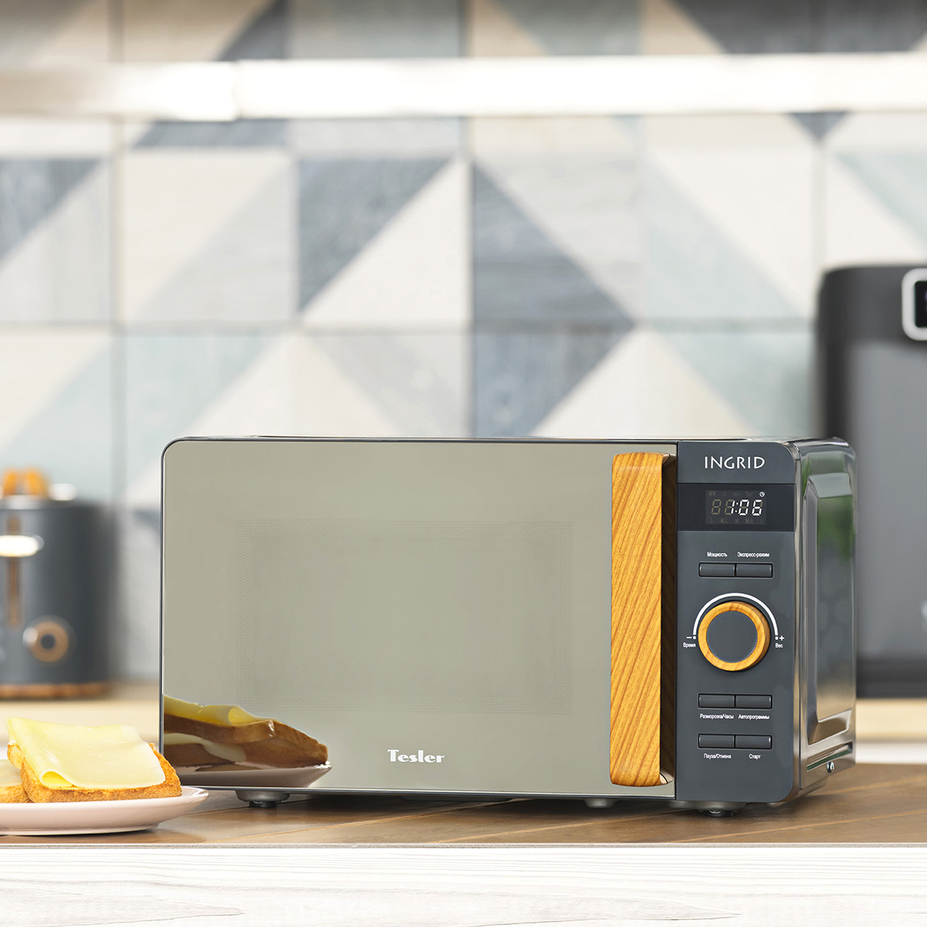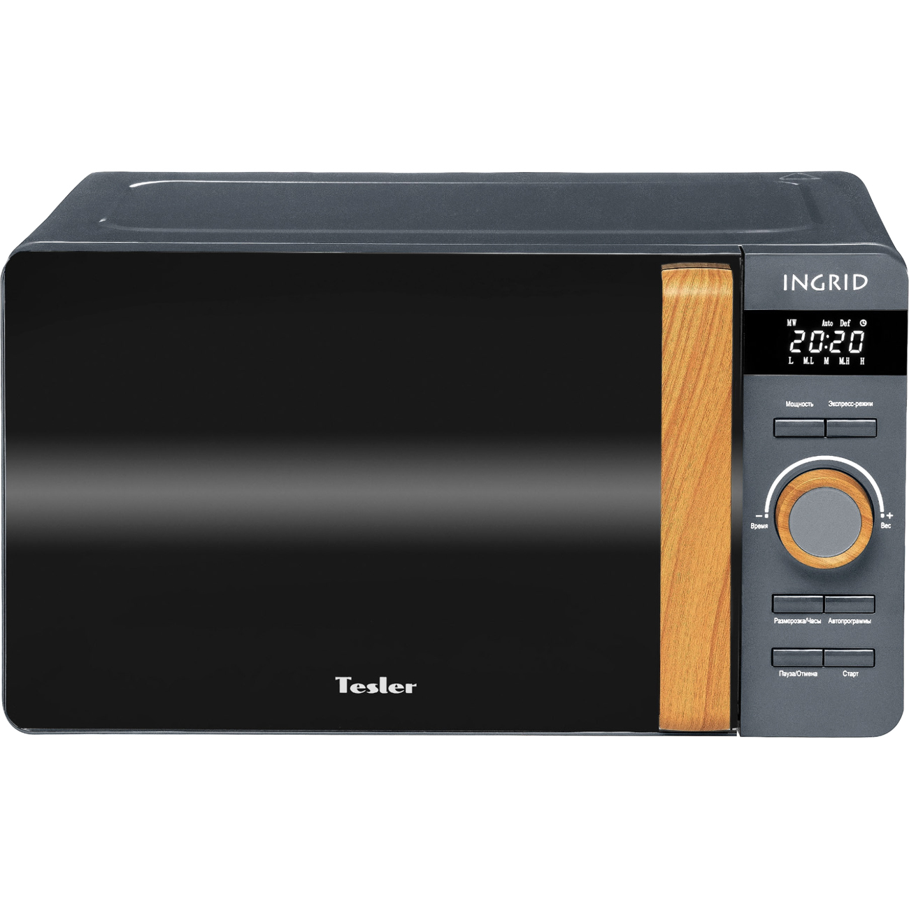 Микроволновая печь Tesler ME-2044 в корпусе серого цвета обладает внутренним пространством объемом 20 л. Габариты устройства составляют 25,7х45,1х35,4 см, а масса — 10,5 кг. Потребляемая мощность микроволновой печи — 1150 Вт. В устройстве есть встроенное освещение. У микроволновой печи электронный тип управления.