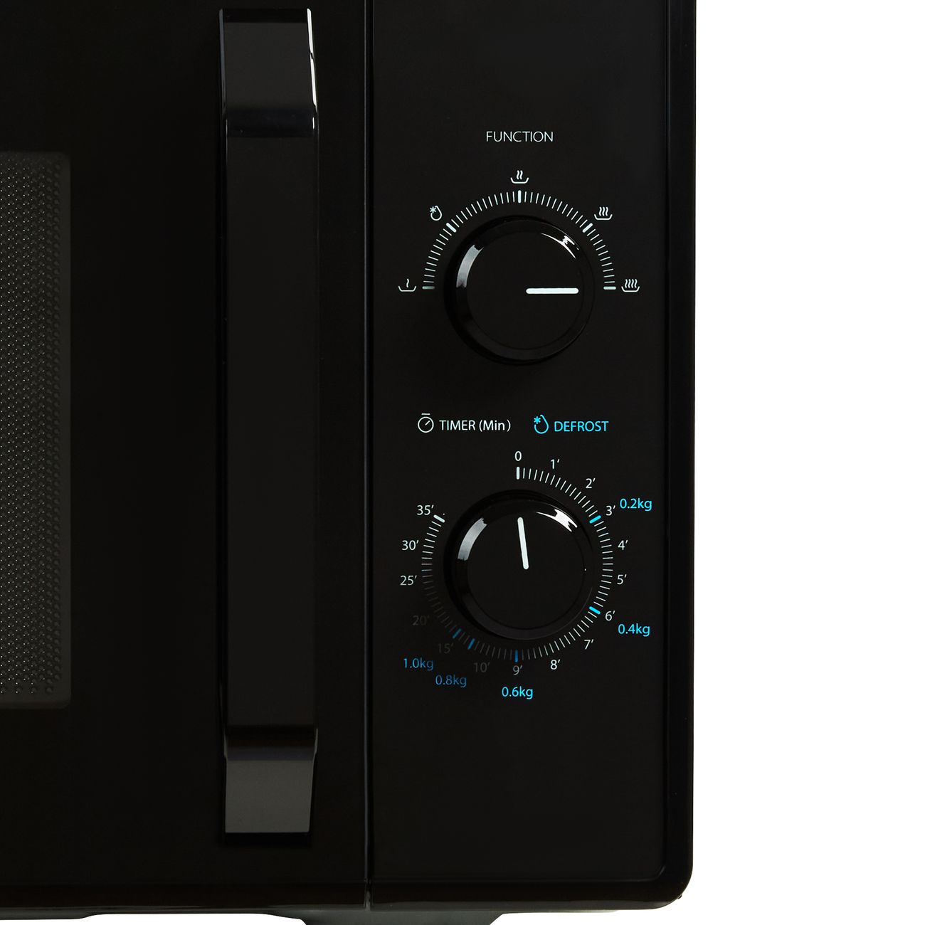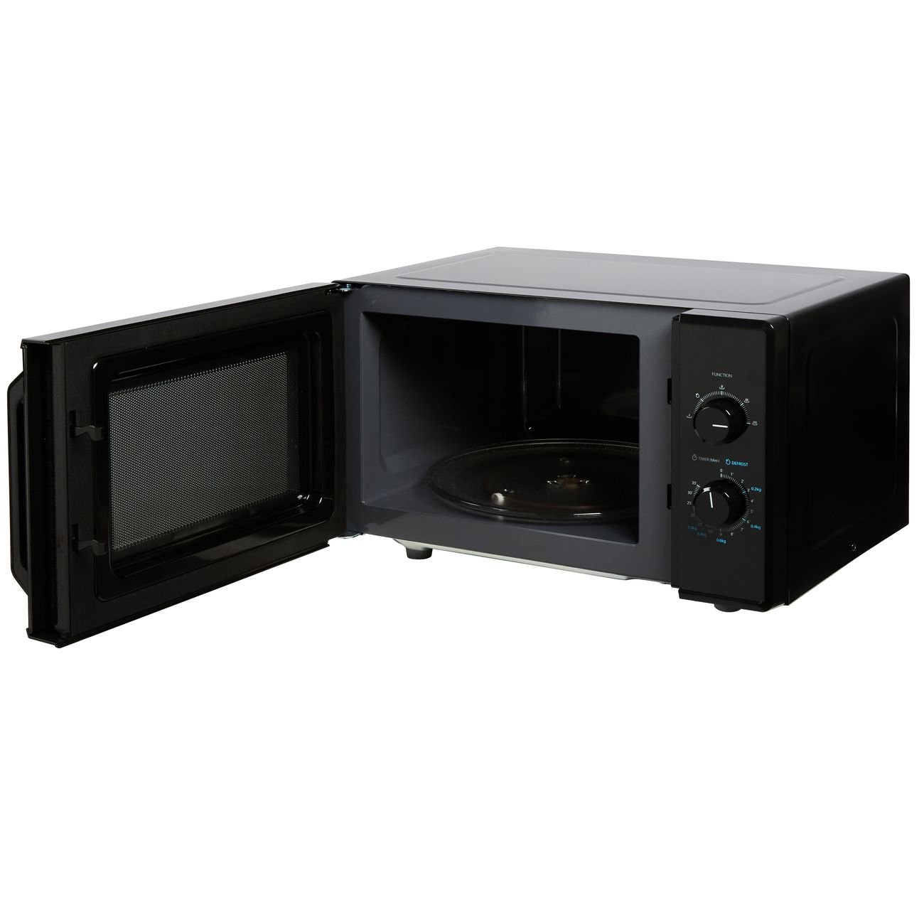 Микроволновая печь соло Toshiba MW2-MM24PF черного цвета функционирует на пяти уровнях мощности. Мощность устройства — 800 Вт. Блюда размораживаются равномерно, а в процессе происходит ориентация на вес. Управление прибором механическое.