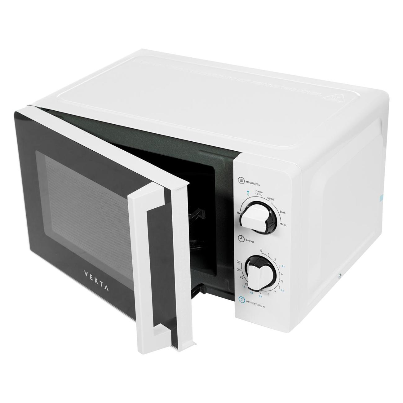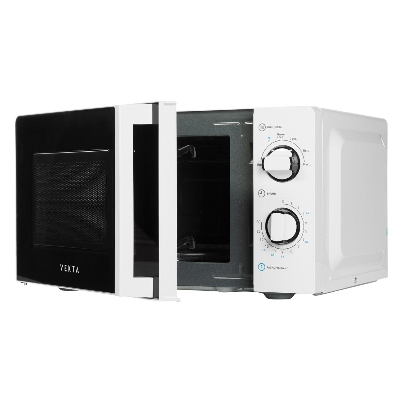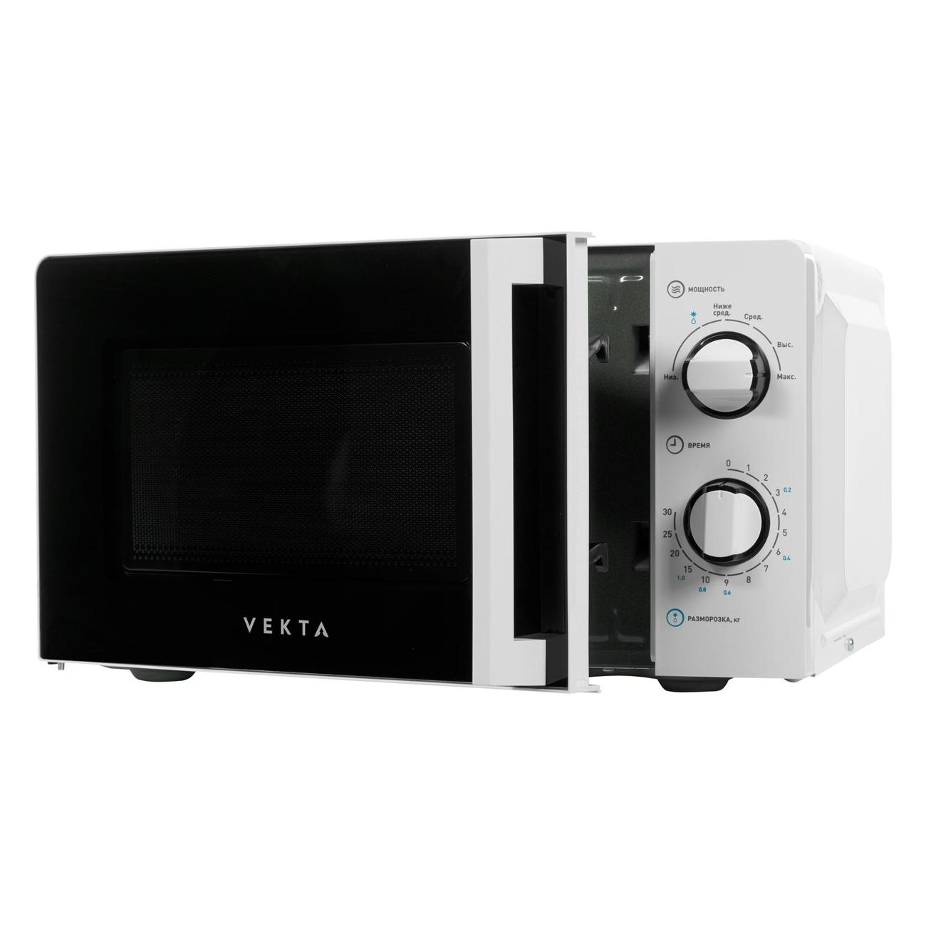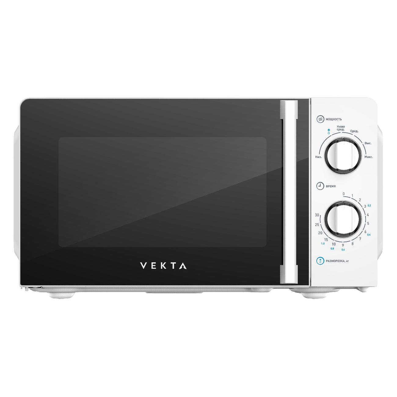 Микроволновая печь соло Vekta MS720EHW оборудована камерой объемом 20 л. Функционал модели включает в себя шесть ступеней мощности микроволн с предельным показателем 700 Вт. Печь равномерно разогревает блюдо и способна размораживать продукты в соответствии с их весом. Конфигурацией устройства предусмотрен механический тип управления. Модель оборудована фронтальной панелью из стекла и пластика, внутренним эмалированным покрытием и стеклянной поворотной платформой.