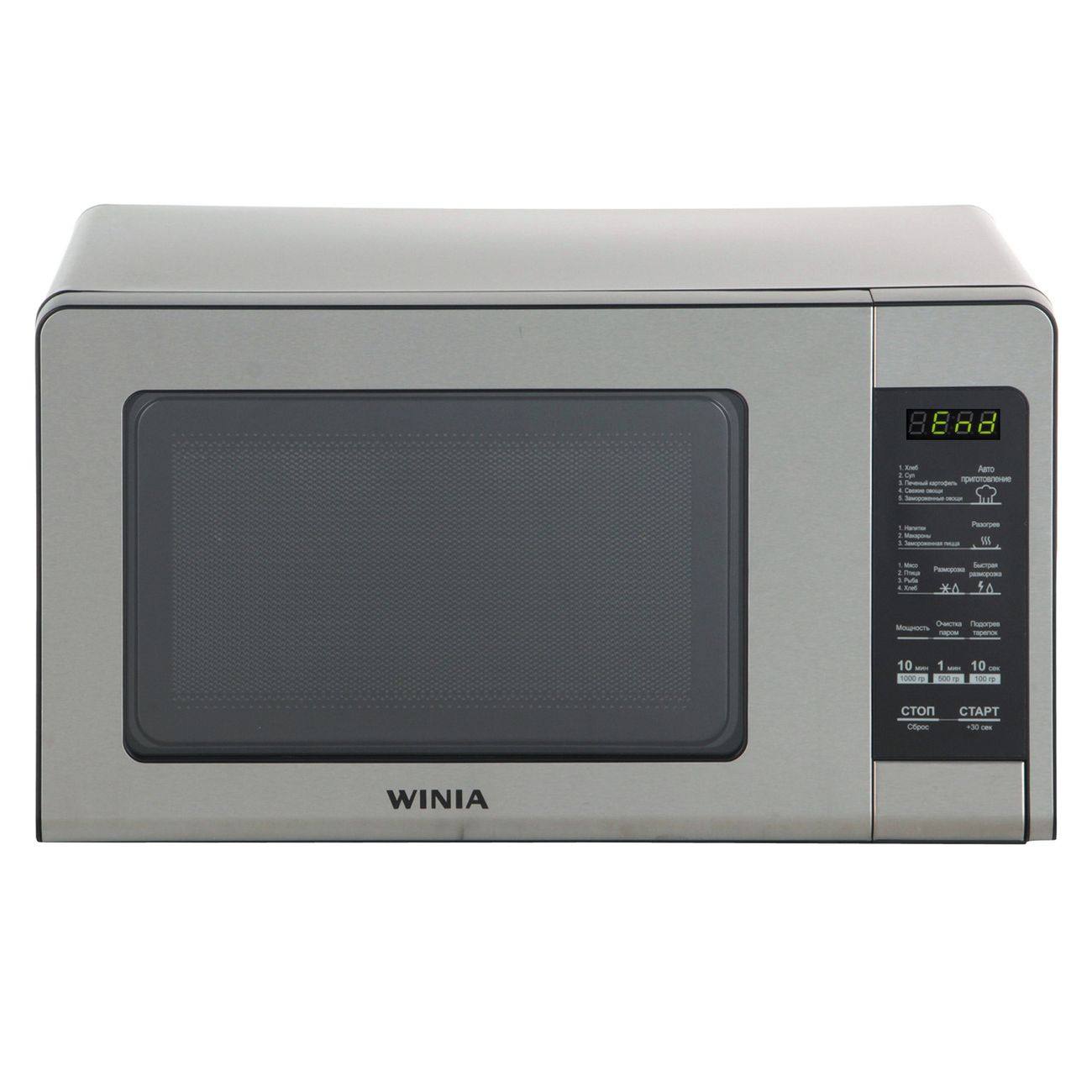 В эту модель заложено шесть автоматических программ приготовления, три – разогрева и четыре – размораживания. Вам останется только задать тип продукта и его вес, а все остальные параметры прибор подберёт автоматически. Конечно, настройки можно вводить и самостоятельно: выбирайте уровень мощности из 11 ступеней и устанавливайте таймер (до 59 минут 90 секунд). Время, оставшееся до конца цикла, будет отображать цифровой дисплей. О завершении вас оповестит звуковой сигнал.