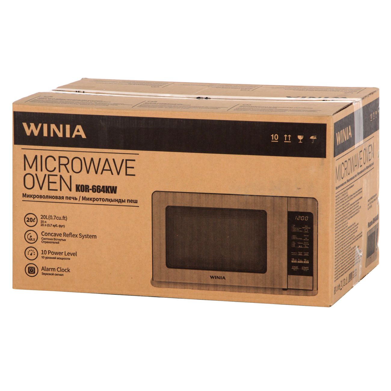 Winia KOR-664KW – удобная и простая в использовании микроволновая печь объёмом 20 л. К вашим услугам электронное управление с интуитивно понятной русифицированной панелью и самые широкие возможности.