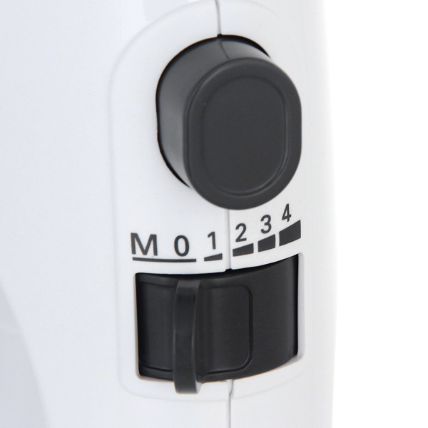 Миксер имеет лёгкий пластиковый корпус симметричной формы, который позволяет удерживать его как правой, так и левой рукой. Кроме того, в нём предусмотрено специальное крепление для намотки провода, не позволяющее ему провисать при готовке.