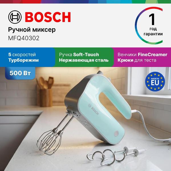 Вы можете купить Миксер Bosch MFQ40302 в магазинах М.Видео по доступной цене. Миксер Bosch MFQ40302: подробное описание, фото и отзывы реальных покупателей, характеристики, возможность скачать инструкции и подобрать аксессуары.