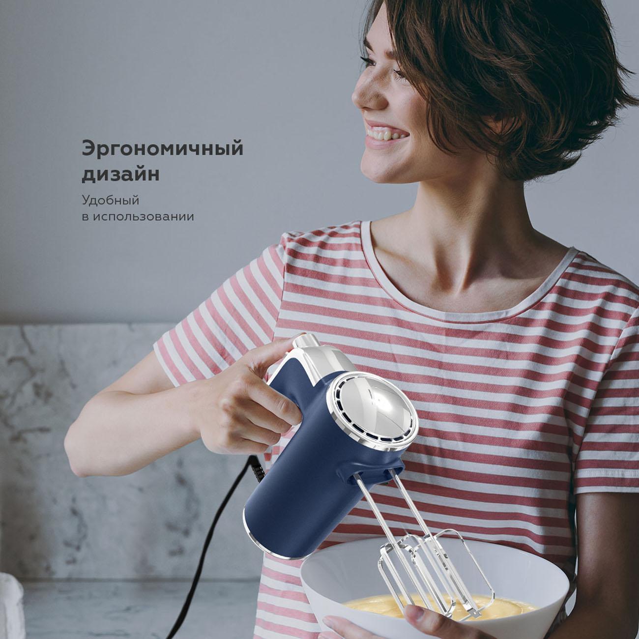 Компактный и эргономичный дизайн ручного миксера делает его хранение легким, даже на небольшой кухне. В комплект входят два венчика для взбивания и два крюка для замешивания, что позволяет вам легко работать с различными ингредиентами. Независимо от того, готовите ли вы десерты или основное блюдо, BQ MX420 станет надежным помощником.