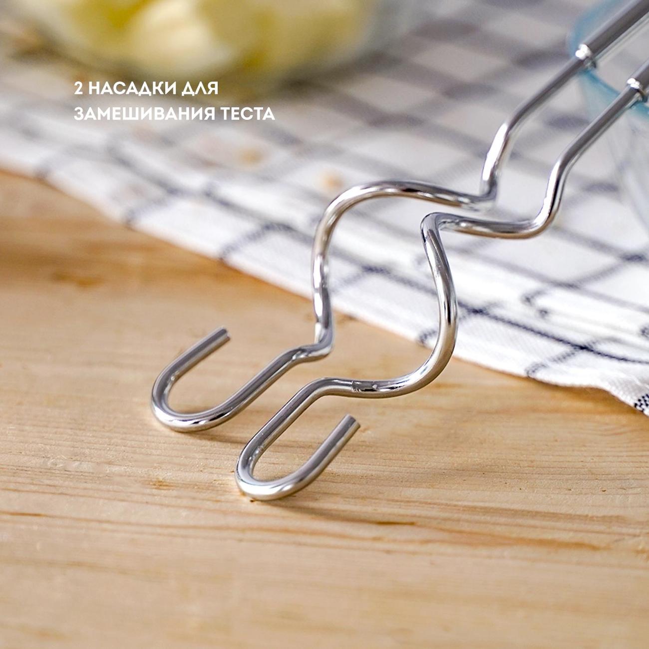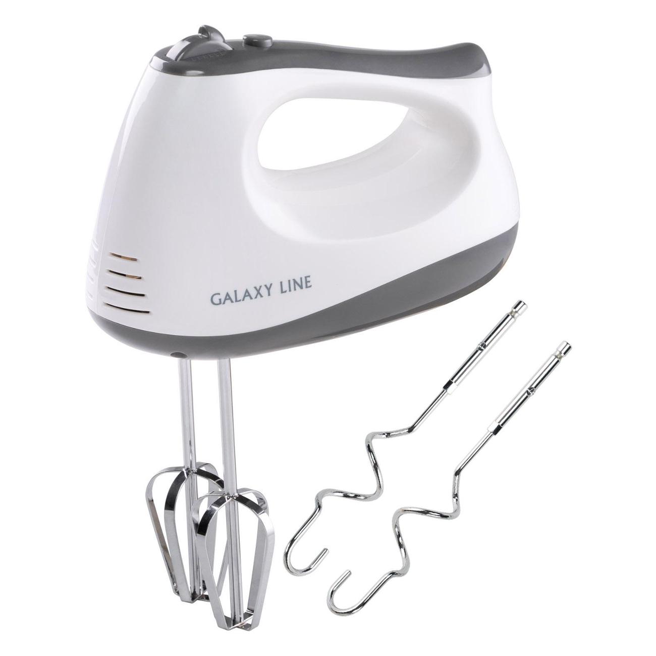 Миксер Galaxy Line GL2225 небольшого веса, что позволяет смешивать ингредиенты в течение длительного времени. Венчик предназначен для взбивания белков, яиц для омлета или крема. Крюк оптимален для замешивания теста. Насадки изготовлены из нержавеющей стали, которая не подвержена образованию коррозии.