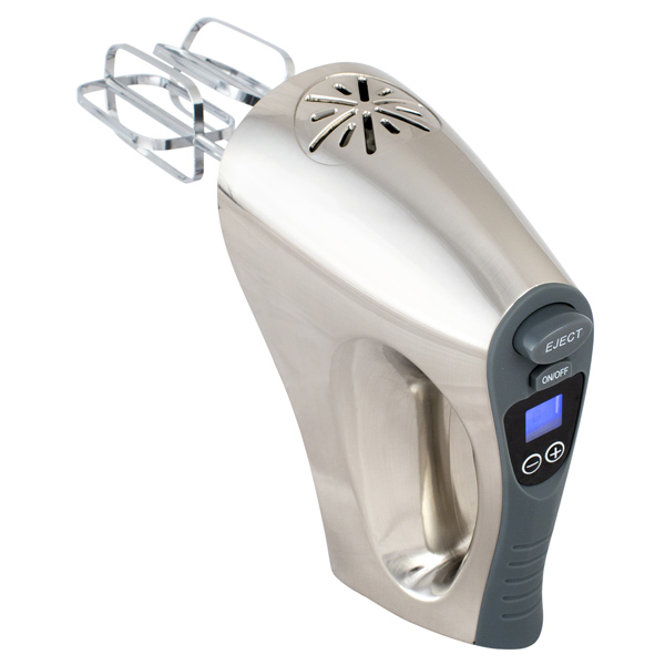 Gemlux GL-HM-305 — это модель ручного миксера, которой замешивают тесто и взбивают жидкие субстанции. Корпус сделан из нержавеющей стали, на ручке — резиновая накладка. Управляется кнопками, размещенными сверху ручки. Присутствуют кнопки включения и таймера, а также две сенсорные стрелки, регулирующие обороты вращения рабочего органа — 16 режимов. Здесь же расположены дисплей и кнопка побольше, нажатием на которую отделяются насадки. В комплект входят две спирали и два венчика, изготовленные из нержавеющей стали. Мощность — 350 Вт. Подключается к бытовой сети. Размеры — 160 х 200 х 90 мм. Масса — 1,3 кг.
